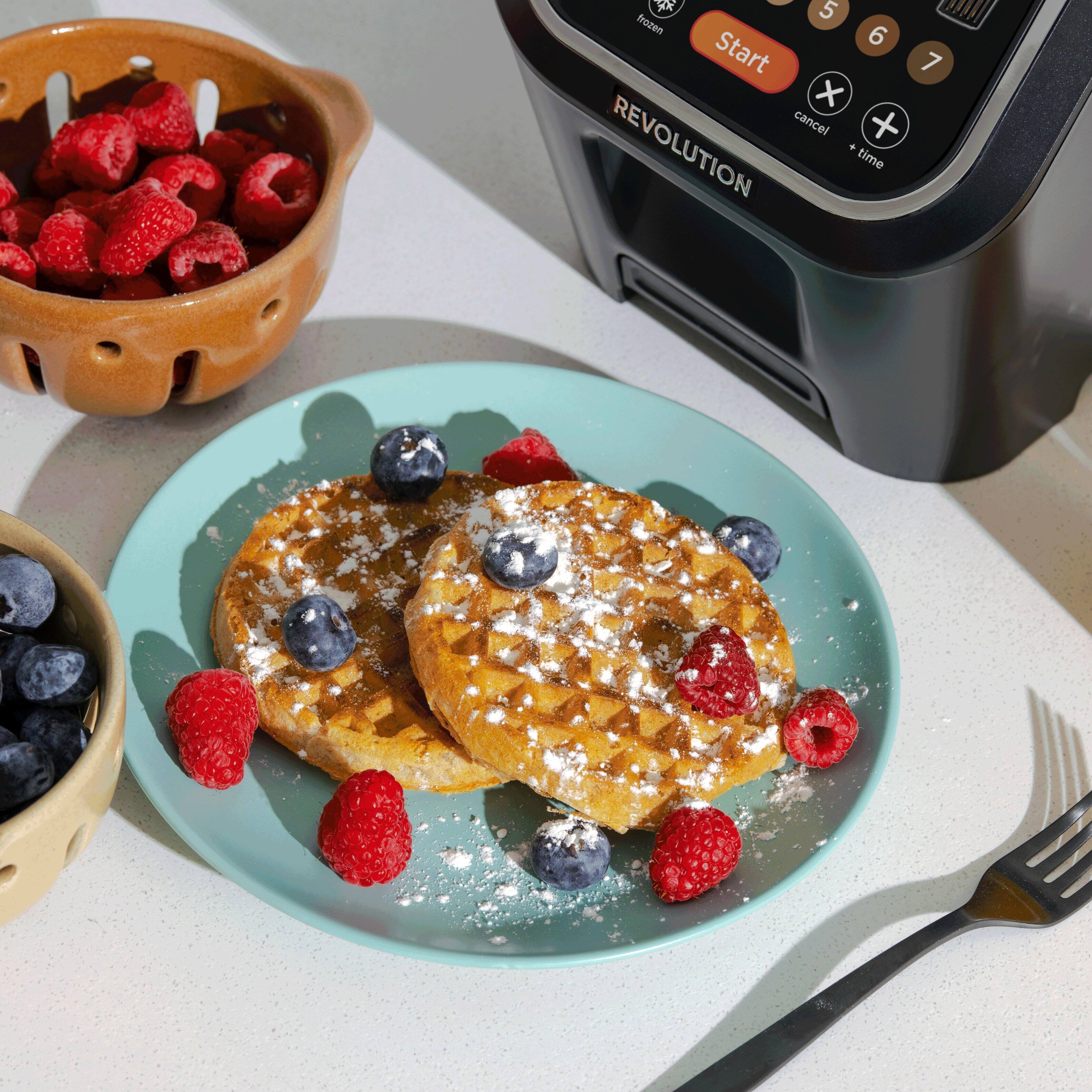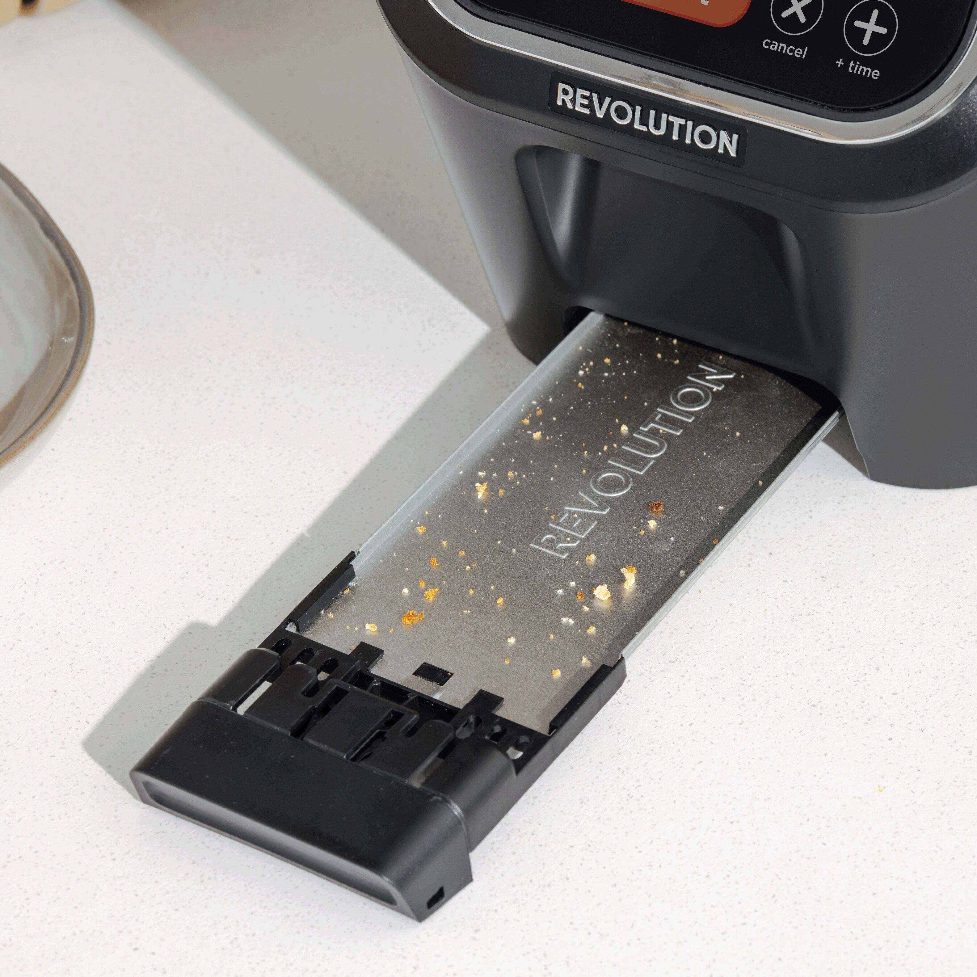 The Revolution Cooking 2-Slice InstaGLO R90 Toaster combines advanced technology with sleek design to elevate your toasting experience. Featuring a unique InstaGLO heating technology, this toaster ensures faster and more even toasting without the need for a preheat. With intuitive touch controls, you can easily select from various browning levels and functions, including toast, bagel, and defrost settings. The spacious slots accommodate a variety of bread sizes, from thick artisan slices to standard loaves. Its modern aesthetic, complete with a digital display and compact footprint, makes it a stylish addition to any kitchen countertop. Enjoy perfectly toasted bread, bagels, and more, all with the push of a button.