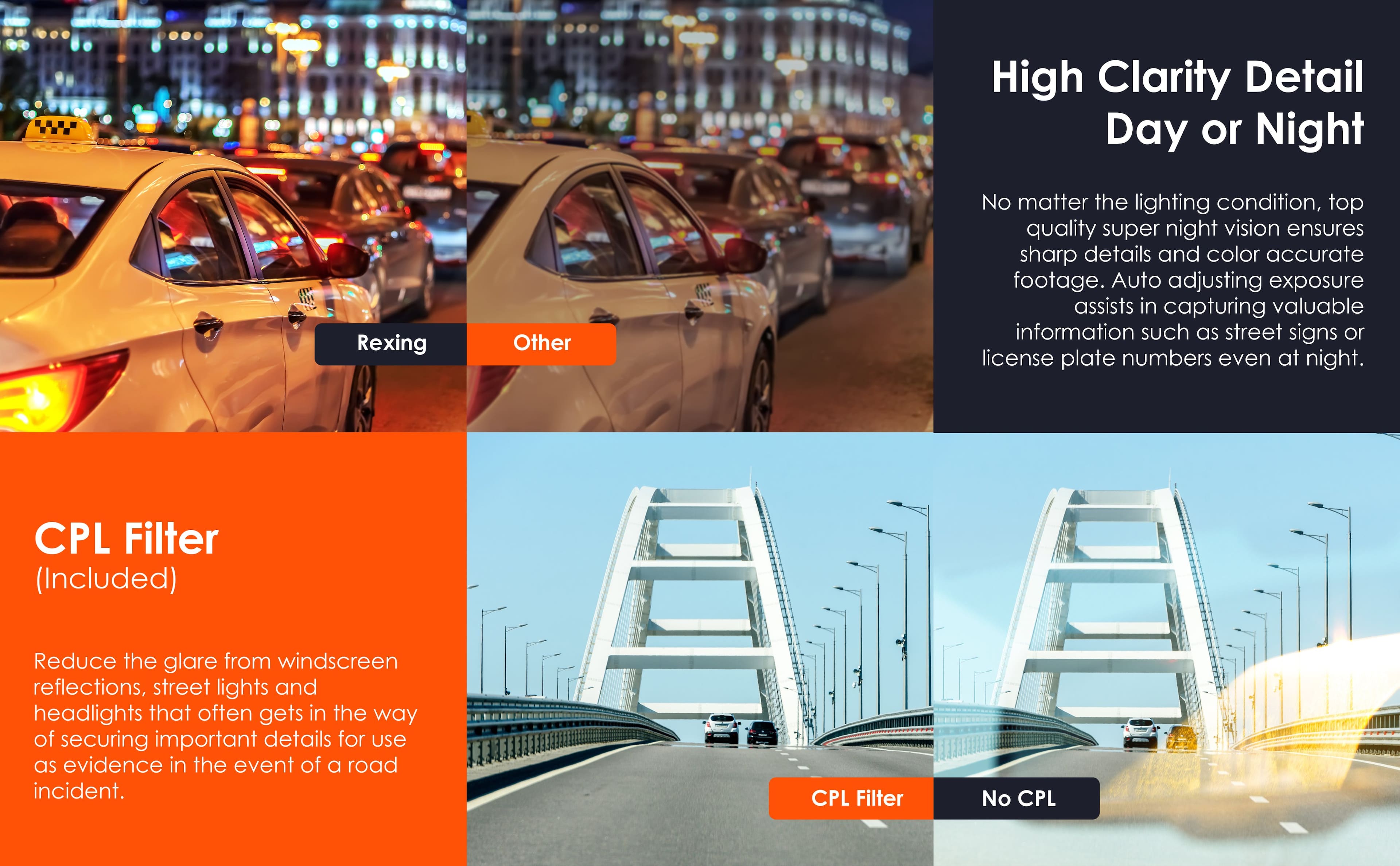We recommend using the CPL filter we designed for use with this specific camera in order to reduce the glare that often occurs due to headlights and street lights.