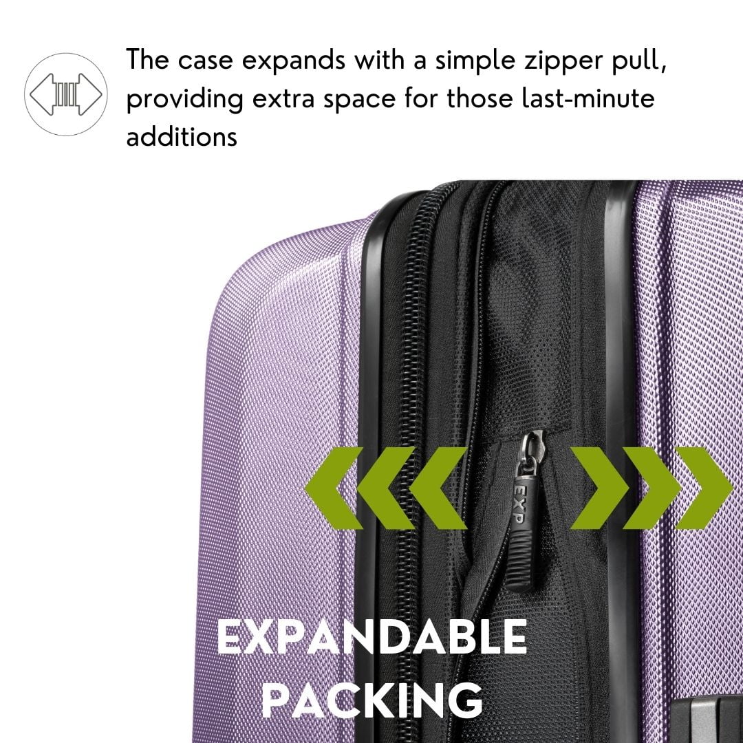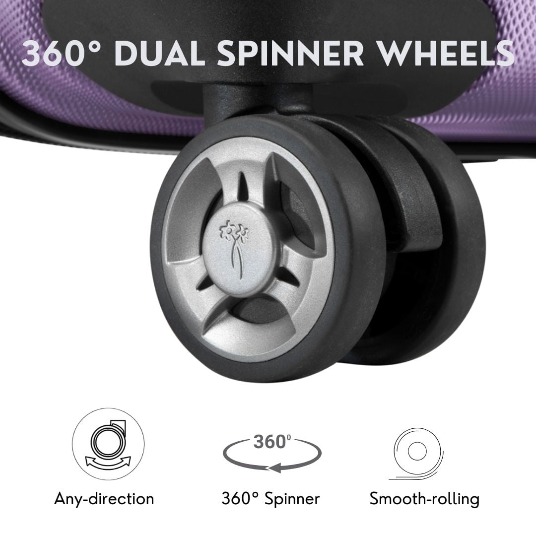 Durable Protection: Crafted from a strong and flexible polycarbonate alloy, this hardside carry-on offers superior protection for your belongings, ensuring they withstand the rigors of travel. Effortless Mobility: The dual spinner wheel system provides 360° mobility, allowing for smooth maneuverability through crowded airports, minimizing strain on your arms. Comfortable Handling: Featuring a multi-stage locking pull handle that adjusts to your ideal height and cushioned carry handles for easy lifting, this carry-on prioritizes your comfort on the go. Smart Organization: The split-book style opening reveals two spacious packing compartments, complemented by a zippered divider pocket and multiple interior pockets for optimal organization. Tech-Friendly Design: Stay connected with a built-in USB port featuring a sliding protective cover and an internally routed cord, plus a snap-out water-resistant toiletries pouch for easy access to your essentials.