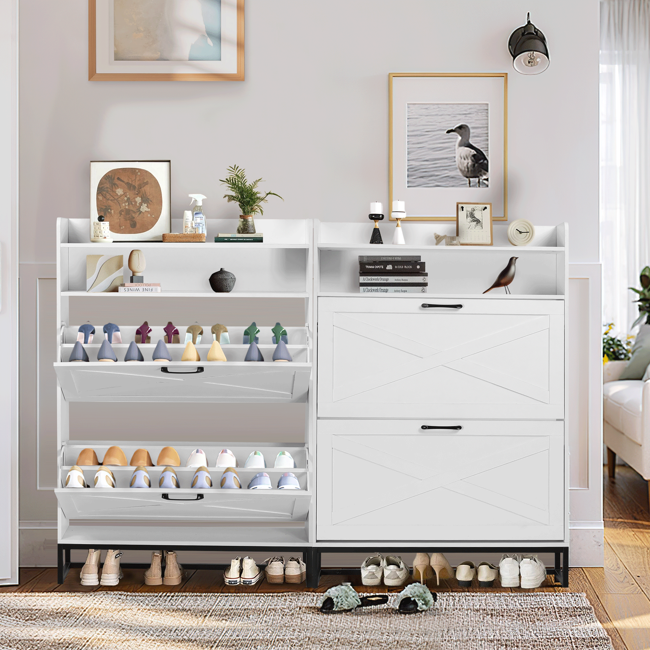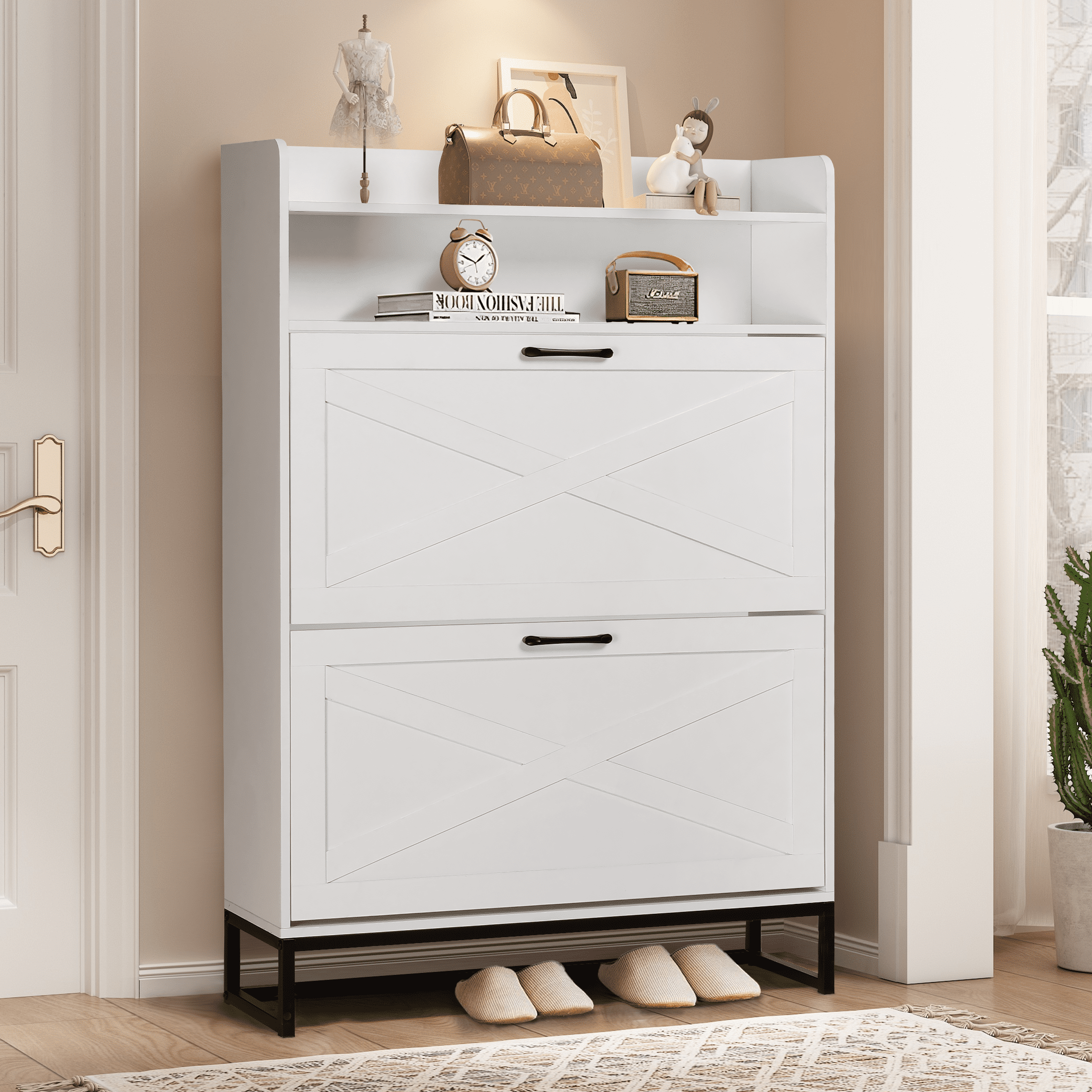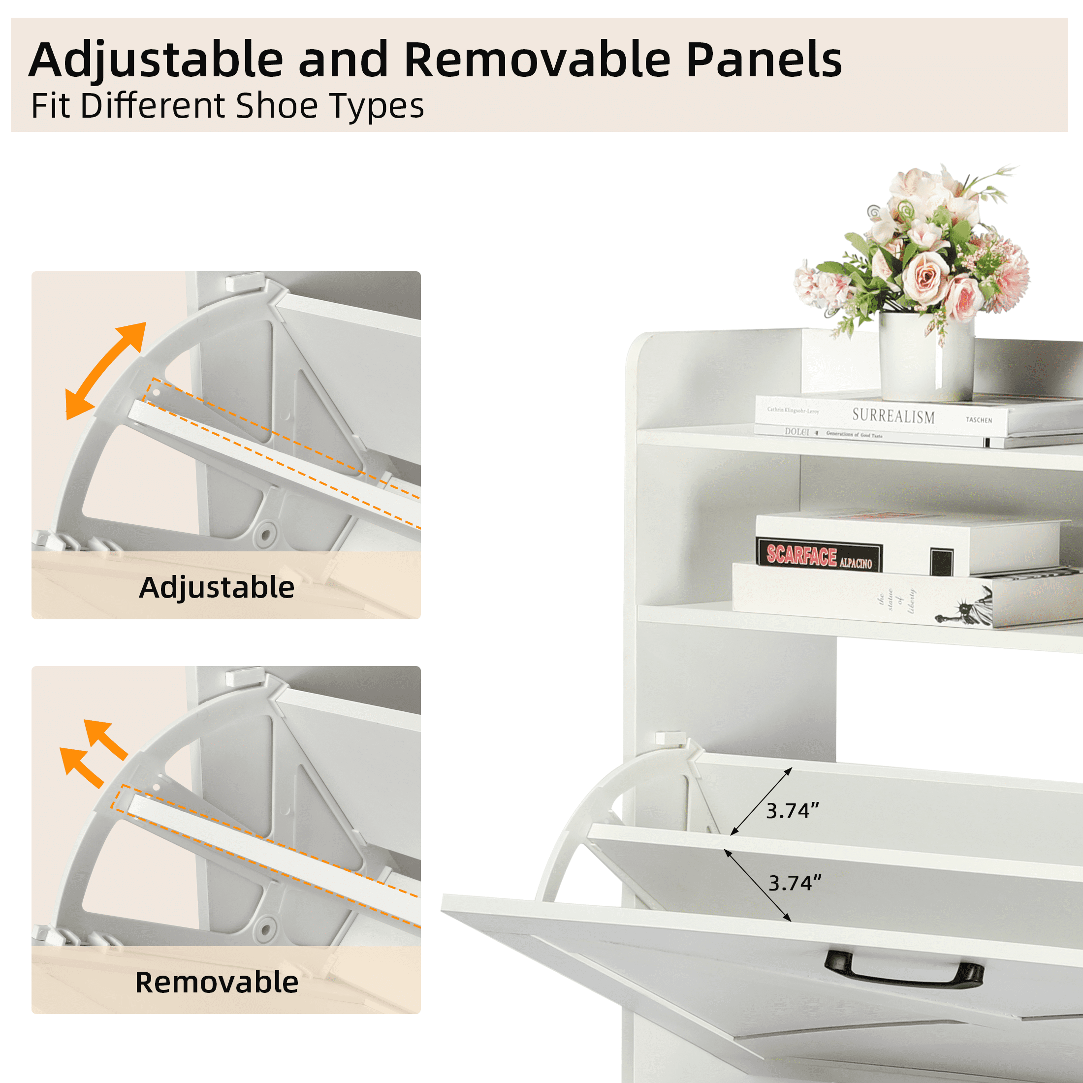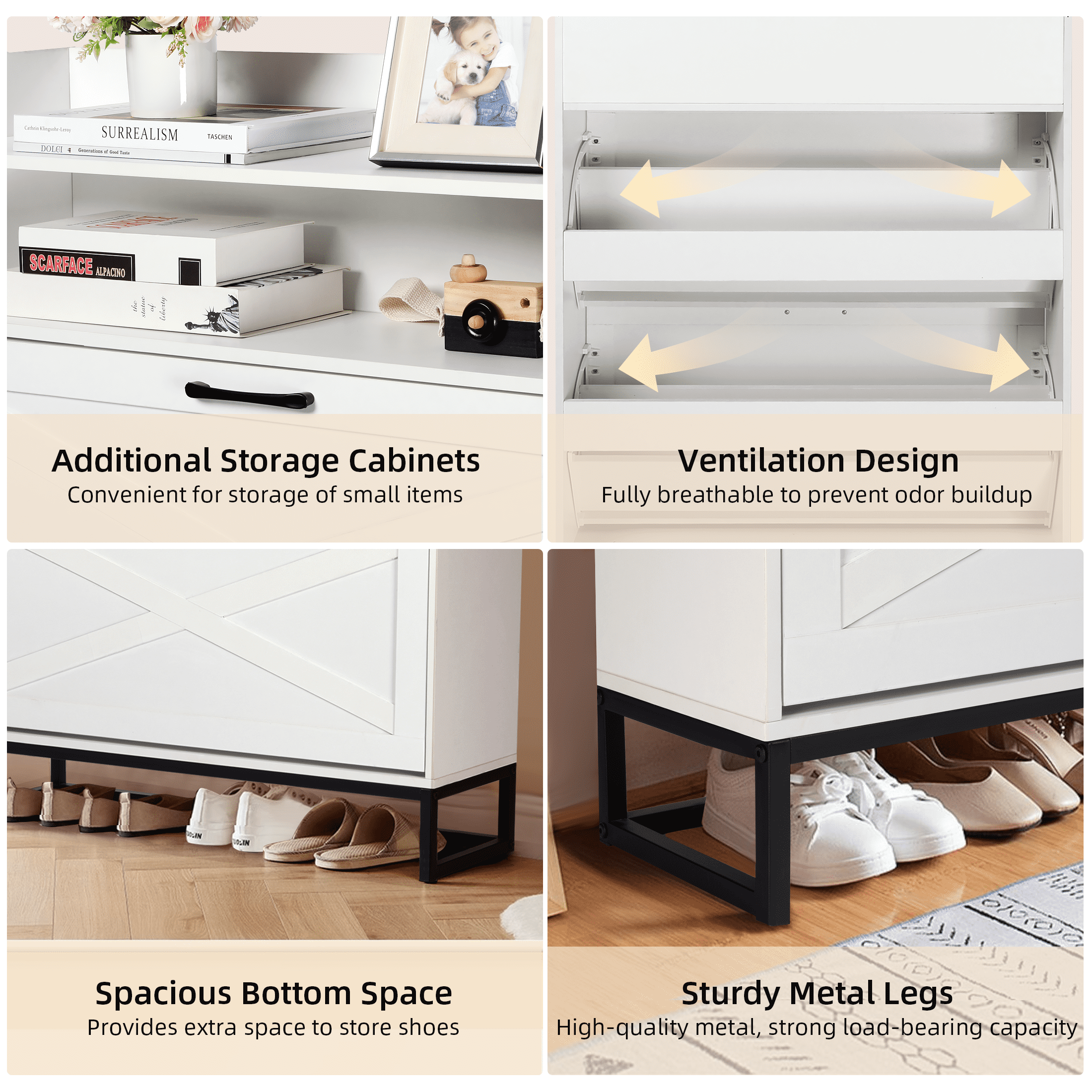 RichYa Shoe Cabinet with 2 Flip Drawers, 20 Pairs, Shoe Cabinet Storage for Entryway, White