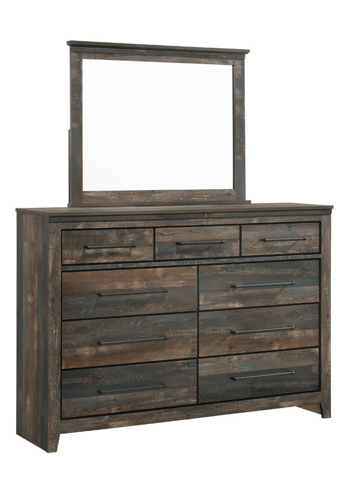Set includes: One (1) dresser mirror Mountain retreat rustic style warms up your home with a cabin-like ambiance Crafted with 3D paper veneer in weathered dark brown that is easy to maintain Exclusive to Coaster