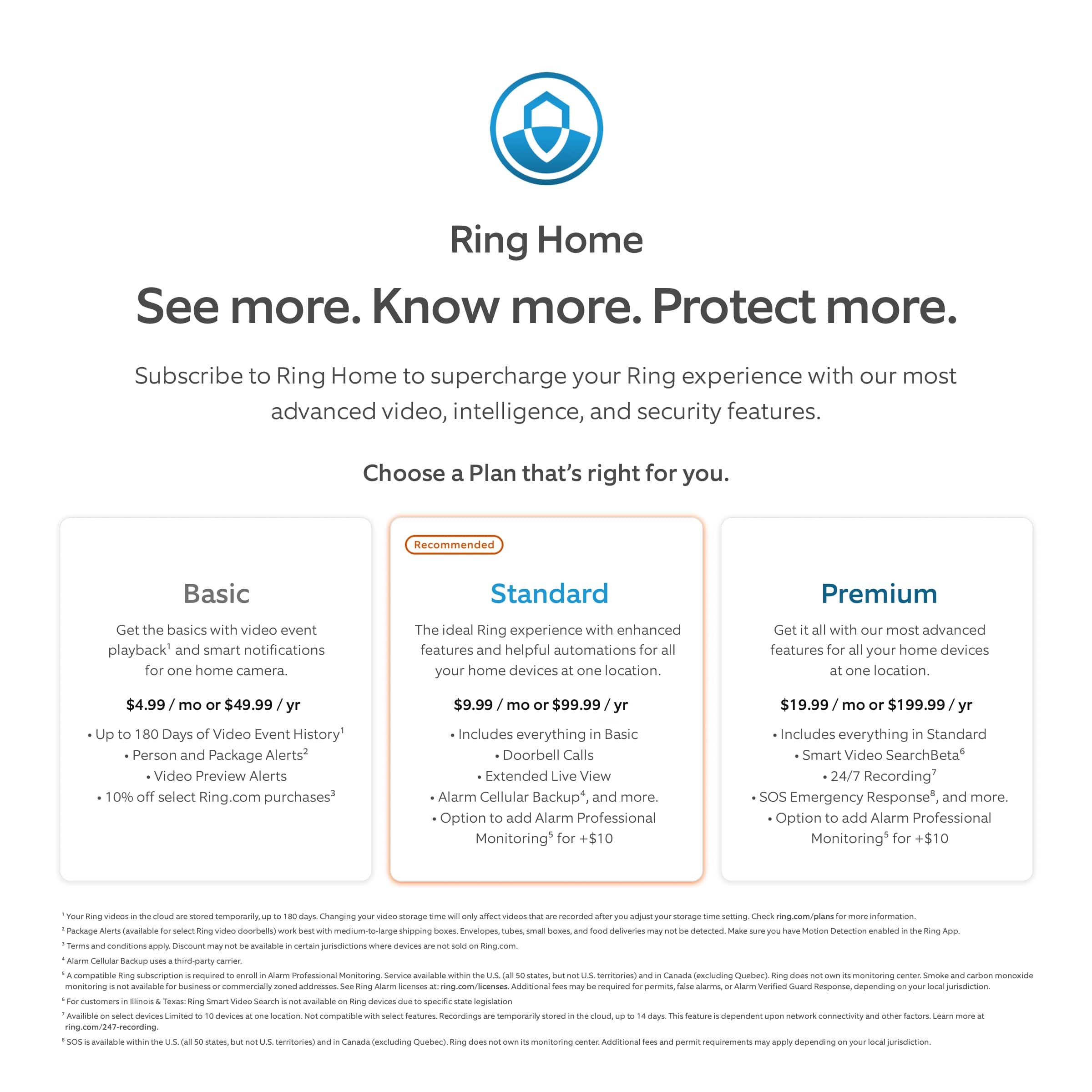 Get 24/7 emergency police, fire, and medical response when sensors are triggered when you subscribe to Ring Home Standard or Premium and add Alarm Professional Monitoring* to your Plan (sold separately, additional license and other fees may apply).