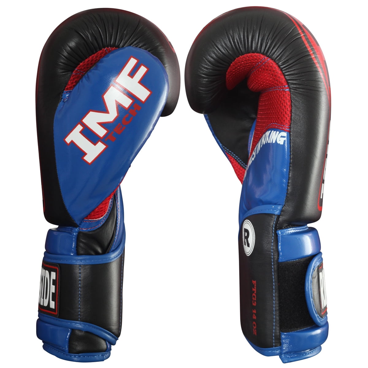 Ringside Apex Predator Sparring Gloves: The contrasting mesh palm encourages quicker evaporation of sweat and water A full 11″, tapered, hook-and-loop strap secures the glove in place Complete with an attached thumb Specially placed padding in the palm provides another layer of protection when catching punches 100% full grain, premium leather striking surface IMF Tech padding maintains the safety of the hands of both sparring partners Contrasting mesh palm encourages quicker evaporation of sweat and water Extra wide openings allow the hand to easily slip into the glove Ringside sparring gloves includes attached thumb Available sizes: 14 and 16 oz