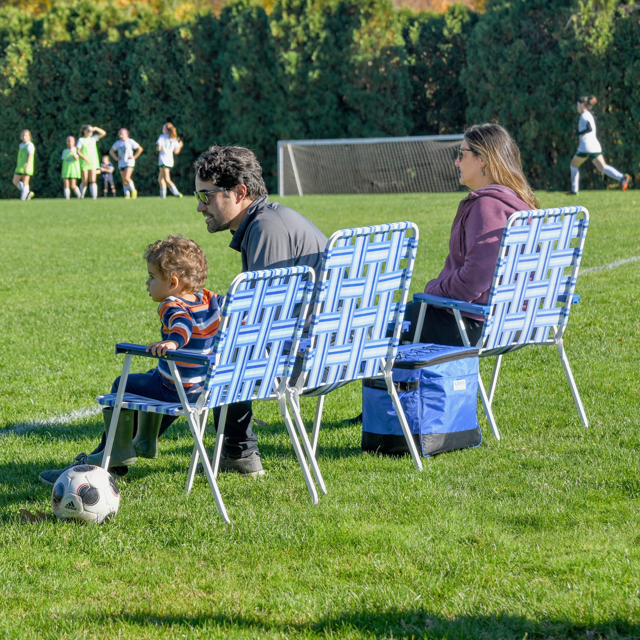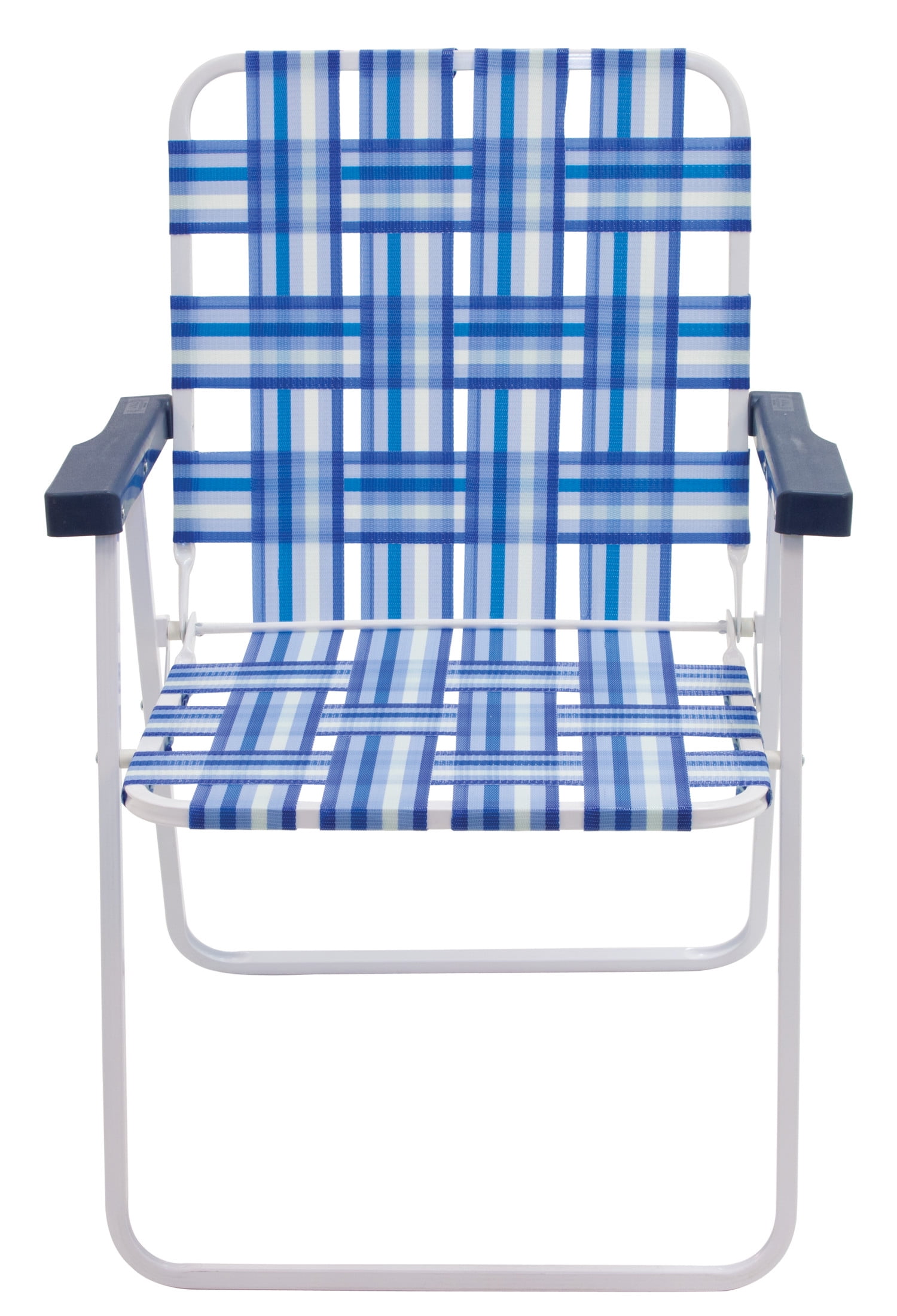 Sit back and relax at the beach, pool, or in your lawn with this folding web chair Heavy-duty lawn chair features molded comfort arms and rust-resistant, powder-coated steel frame Sits 16 inches off the ground to keep you out of the sand, surf, and grass; measures 22 inches long, 23 inches wide, and 31 inches tall when open Folds up for easy and compact storage; measures 3 inches long, 23 inches wide, and 29.5 inches high when folded Woven web slings support up to 190 pounds of person and beach gear Color: Blue Dimensions, open (L x W x H): 22.75 x 22.75 x 31 inches Dimensions, closed (L x W x H): 2.75 x 22.75 x 29.5 inches Weight: 5 pounds Manufacturer warranty: 1-year warranty