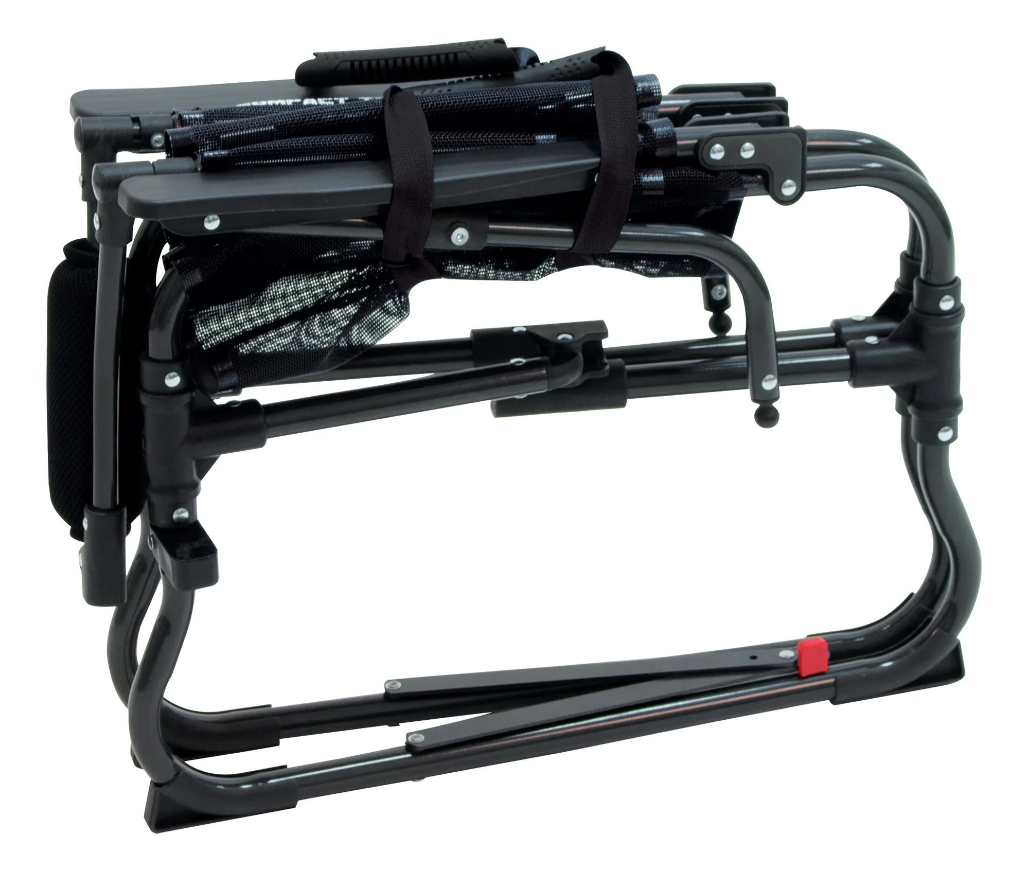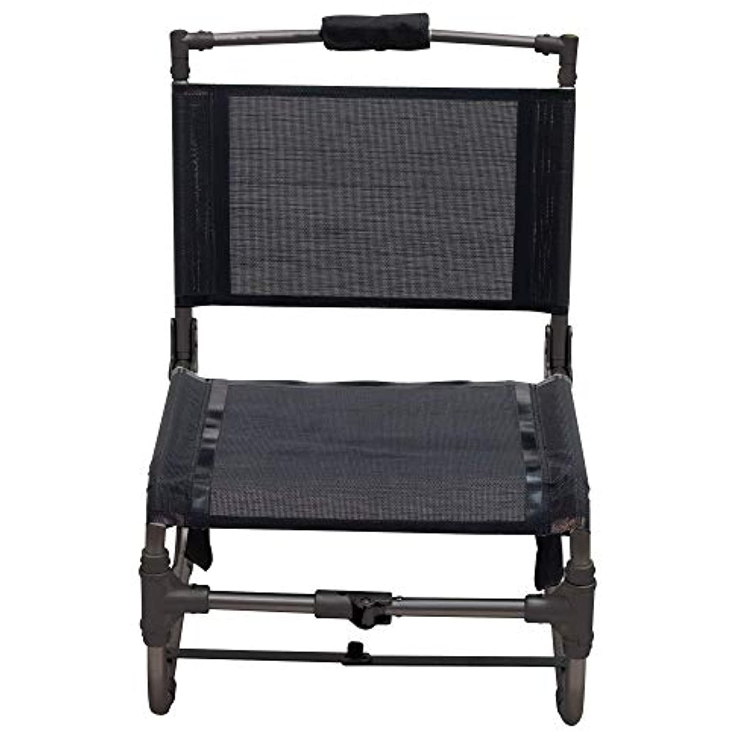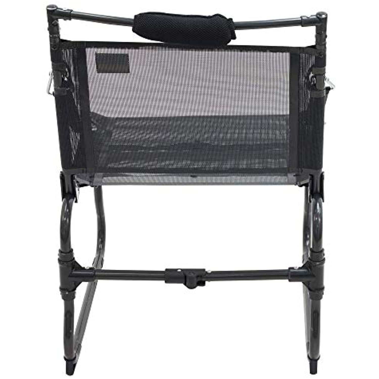Rio Brands Steel Outdoor Compact Traveler Folding Chair, Black Large size for comfortable seating Compact design for easy transport Sets up in seconds for quick use Folds down small for convenient storage Padded headrest for added comfort Includes a carry strap for easy handling Durable powder-coated steel frame Made with Textilene fabric for breathability Seat height of 12.5 inches for optimal seating