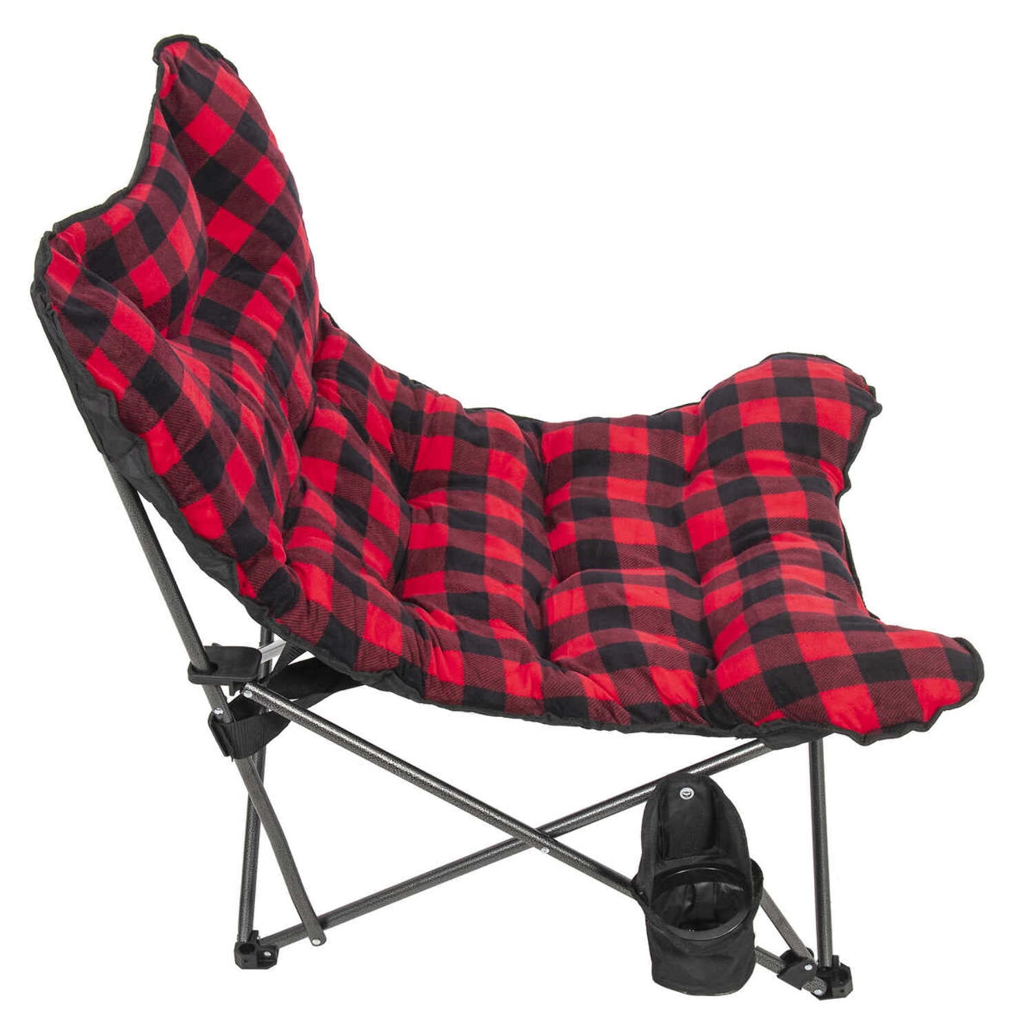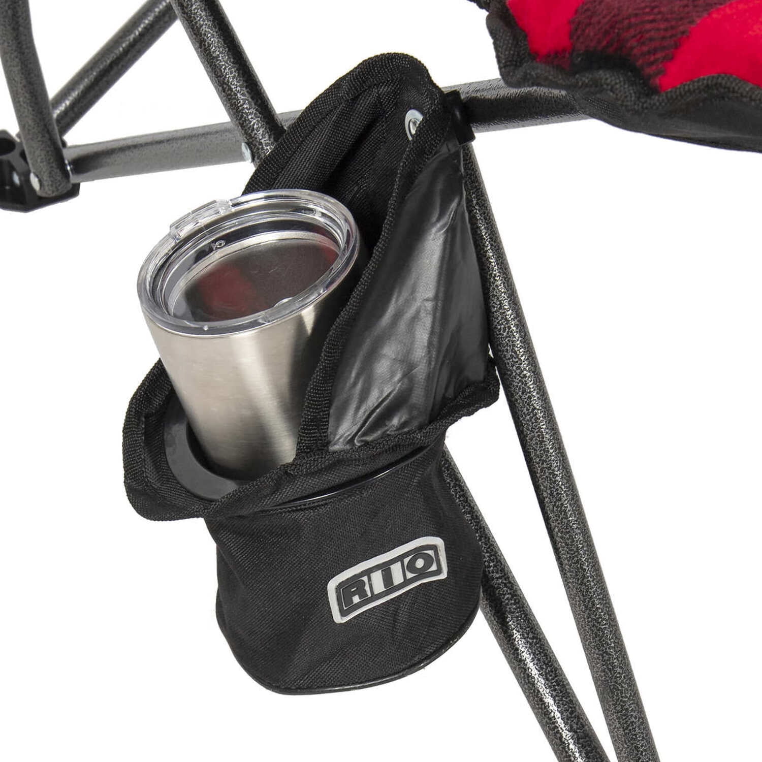 RIO Jumbo Fleece Padded Comfort Chair Product Details The XXL Ultra Padded Camp Seat is the perfect portable seat for the campfire, backyard, or anywhere you want to relax. The extra-wide and extra-deep seat is super padded to give you that couch-like feel. The Comfort Chair has an easy to set-up two-piece design, and folds compact for easy transportation. It also includes an extra-large retractable cup holder for the biggest tumblers. The ultra-sturdy steel frame holds up to 300 lb. Features: Extra Stuffing for More Padding and Comfort Ultra-wide and Ultra-deep Seating Back Straps for Adjustable Back Support Soft Fleece Provides Natural Warmth Steel Frame Has 300 lb. Weight Capacity Specifications Brand RIO Chair Dimensions – Height 37 in. Chair Dimensions – Length 35 in. Chair Dimensions – Width 32 in. Color Multi Model GRPJC01-FL24CO-1 Seating Frame Material Steel Weight 11 lb.