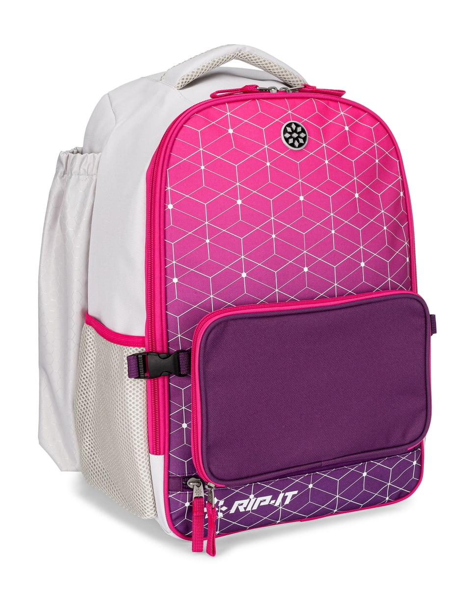 Product Description RIP-IT loves the game of softball and all the gear that comes with it. Bats, gloves, masks, helmets, shoes. Which is why we made bags that keep it all together without sacrificing your signature style. Product Benefits Multiple compartments. Designed to hold your gear. Cleat compartment, airs out gear. Ventilated cubby allows cleats to breathe. Ultra-durable design. Ultra-tough material withstands heavy use. Stay hydrated. Side mesh sleeves to hold your water bottle. Double J-hooks, easy storage. Durable J-hooks keep pack hung in the dugout. Side sleeves. Elastic-cinched side sleeves hold two softball bats.