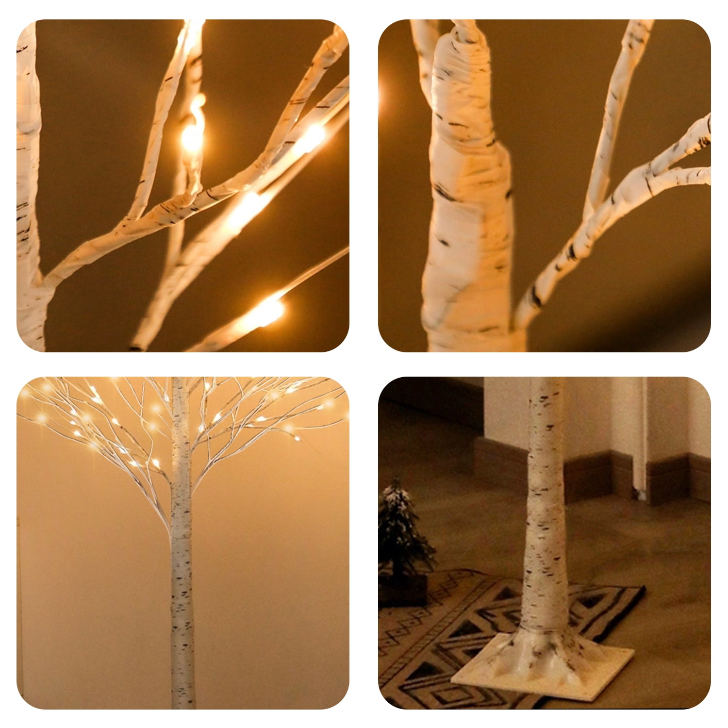 Realistic simulation birch trunk and bendable branches for customizable shape Represents tenacious vitality and brings nature’s beauty into your home Warm white light creates a gentle ambiance suitable for various settings LED: 440 LED lights for bright and beautiful lighting effect Material: Plastic construction for durability Size: 6 ft height, Weight: 3.3 lb for easy handling Control: Remote + Manual for convenient operation Lighting modes: 8 modes for versatile lighting options Theory life span: 5000 hrs for long-lasting use Package includes: 1* LED Birch Tree Light, 1* Remote, 1* Plug, 1* User Manual Wireless Remote for hassle-free control Brightness+/- and timer features for customization Easy installation instructions provided for quick setup Note: The black and white stripe strip on the outer layer cannot be torn off To install:place the tree trunk into the tree stand, secure it, then connect the top and bottom parts before plugging the connector into a USB power supply. Note that the black and white stripe strip on the outer layer cannot be removed.