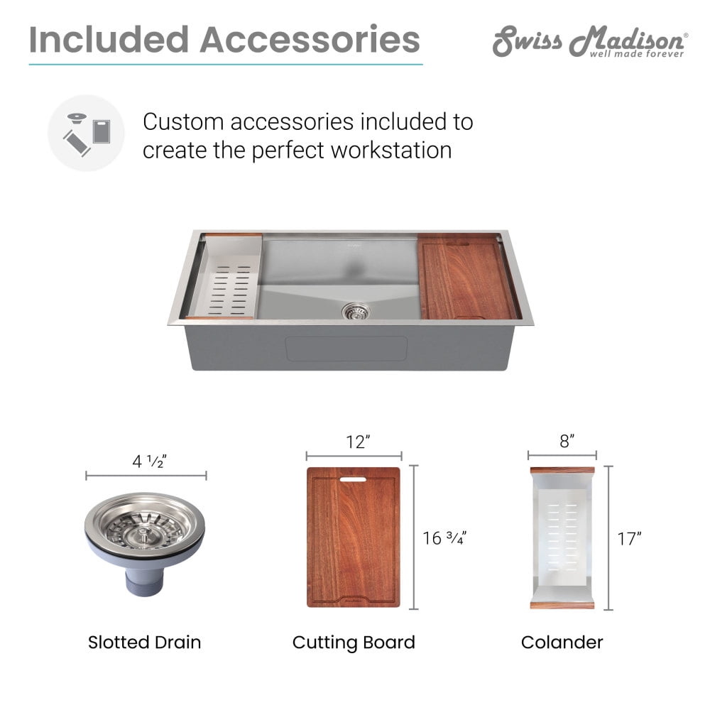 Rivage 45 x 19 Single Basin Undermount Kitchen Workstation Sink