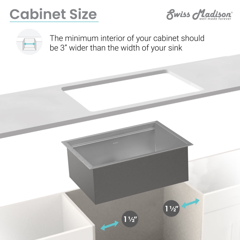 Undermount Installation: Designed to fit beneath the countertop and cabinetry to provide a seamless look. Material: Durable and long-lasting 18 gauge Stainless Steel. Drain Location: Rear Center Basin Depth: 10 Inches R10 Corner Radius: Slightly rounded corners for ease of cleaning and a sleek modern look. Sound Absorbing Pads: Equipped with sound-dampening pads to minimize sink noise and vibration. Sloped Drainage: The slightly sloped sink basin allows water to drain easier. Cabinet Size: The minimum interior of your cabinet should be 3″ wider than the width of your sink. Included: Mounting clips and cutout template. Sold Seperately: Sink drain is not included. Dimensions: 45″W X 19″D X 10″H One Year Limited Warranty