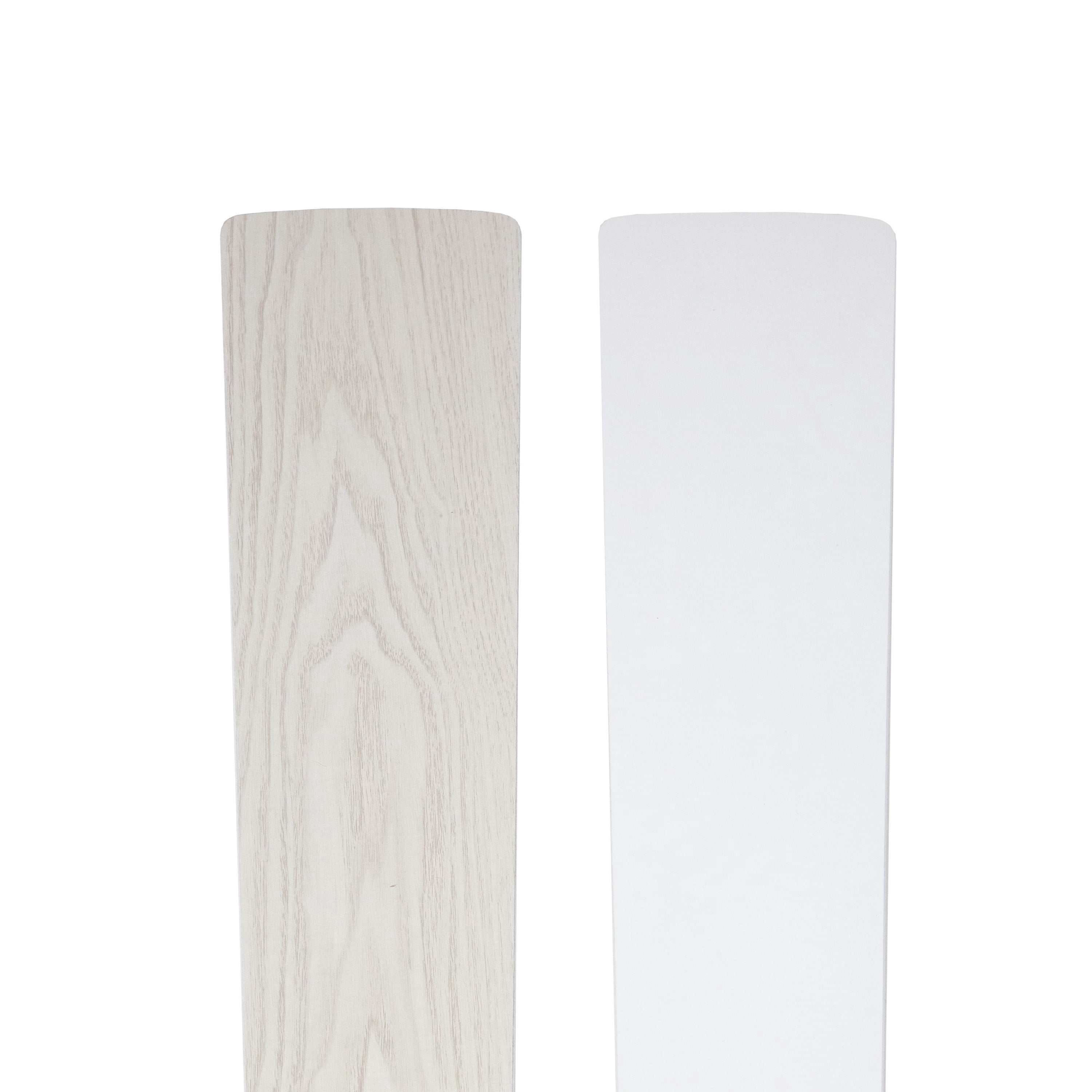 River of Goods Callie 52” Wooden Bead LED Ceiling Fan with Light Kit and Dimmable Bulbs Features a three-speed motor with reversible fan direction Can be set as a flush mount or with an optional 6″ down rod Includes reversible woodgrain blades in white or warm oak grain Requires two dimmable E26 LED 8W bulbs (included) Hardwired installation recommended by a qualified electrician High-speed airflow up to 4225 CFM with electricity use of 65 watts Airflow efficiency rated at 65 CF per minute per watt