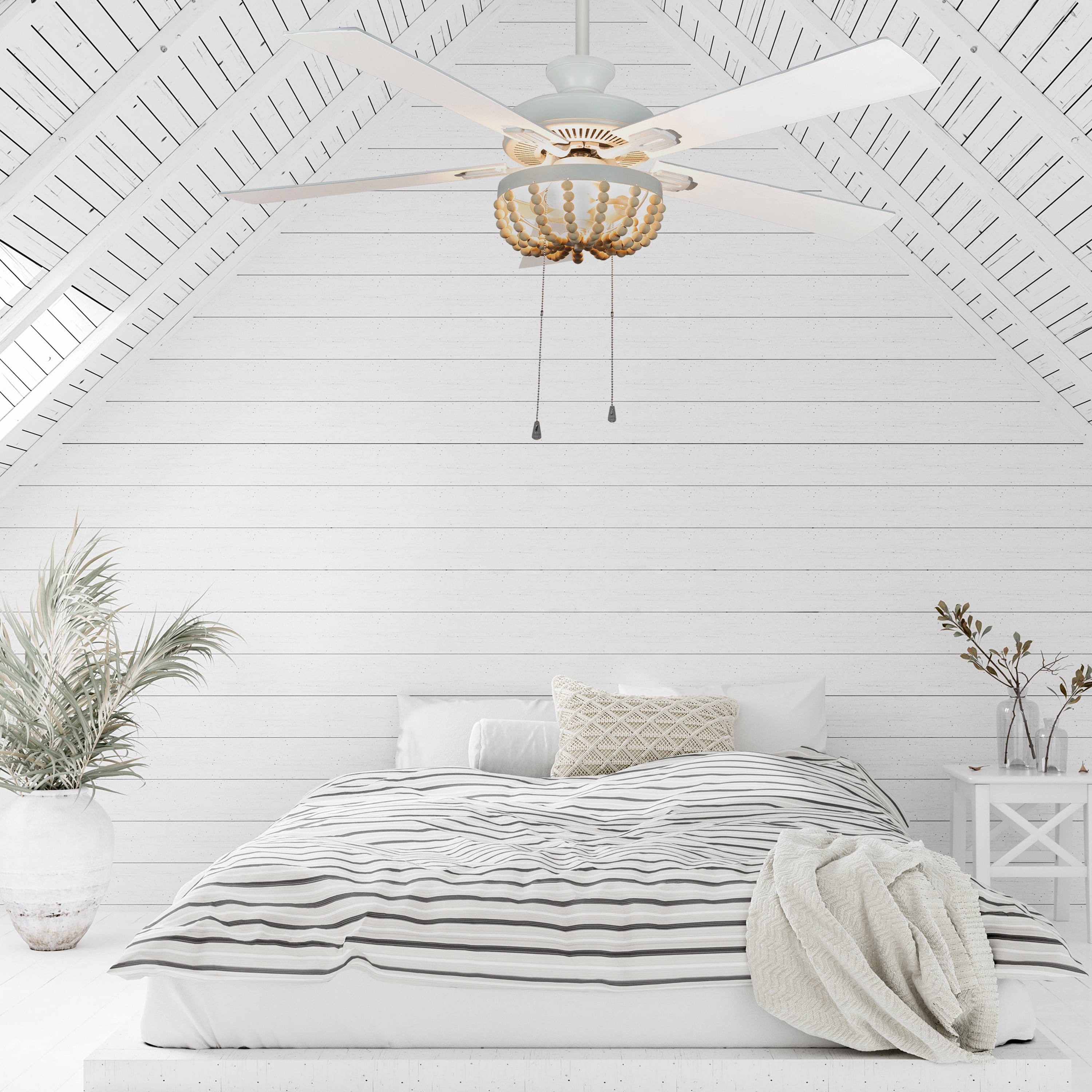 River of Goods Callie 52” Wooden Bead LED Ceiling Fan with Light Kit and Dimmable Bulbs