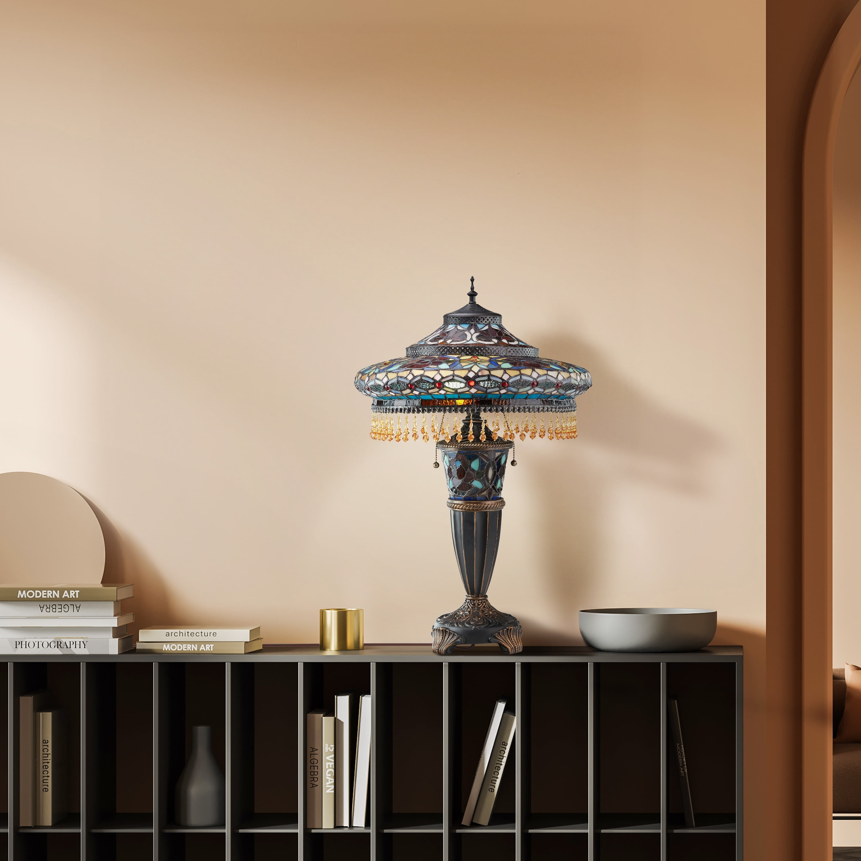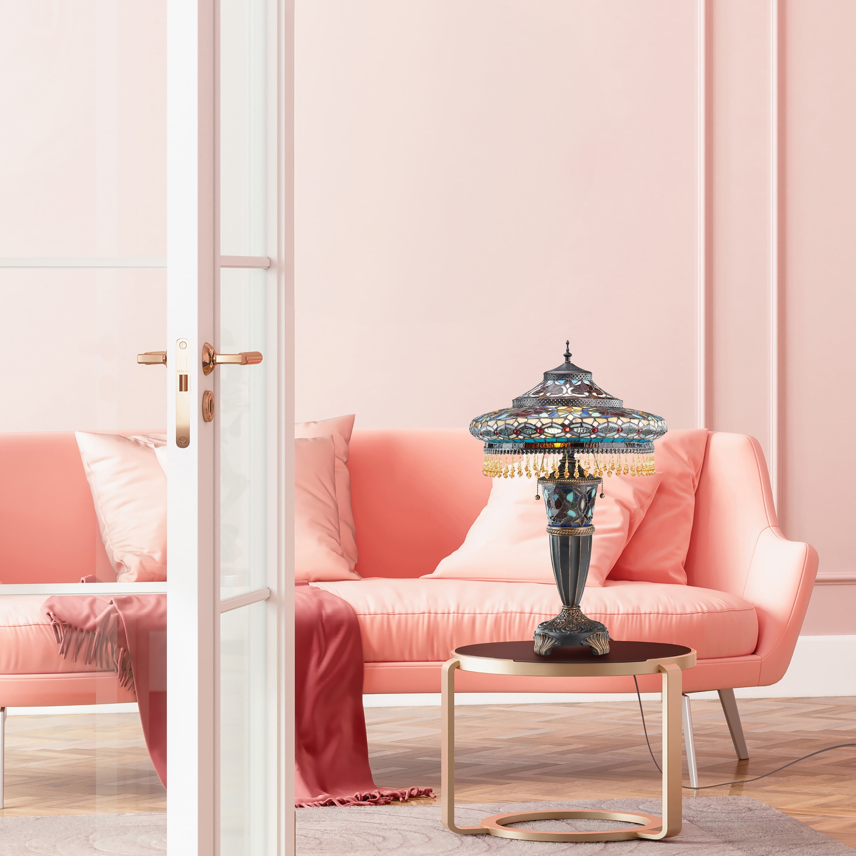 River of Goods Victorian Tiffany Style Stained Glass 27.5″ Double Lit Table Lamp