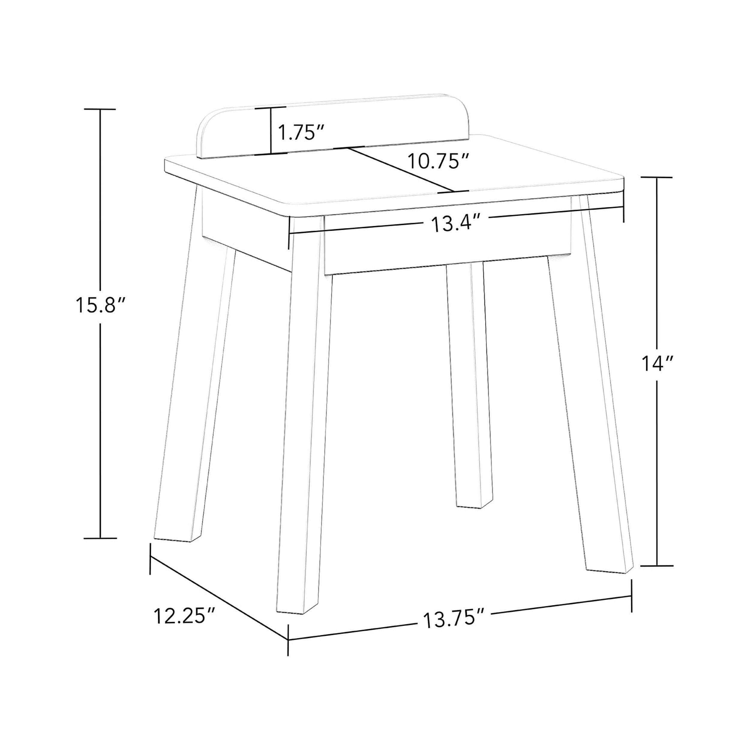 Assembled size: 12.25-in. D x 13.75-in. W x 15.81-in. H. Seat: 13.38″ W x 10.75″ D x 14″ H; 13.5″ H floor to bottom seat Complete the playroom with this set of kids stools. Featuring a smooth white painted finish and a curved lip on the back of the seat, these small kid’s chairs pair perfectly with kid’s play tables, desks, or any other space where the kids like to play The kids 2pc chair set is made of painted MDF for long lasting durability 14” seat height for young children to sit comfortably while reading, writing, drawing and playing Add the RiverRidge® Home Kids Multi-Purpose Activity Table (sold separately) to create a designated arts and crafts area for the kids to be creative and store their art supplies. Pair with additional RiverRidge® kids storage items to give the playroom a fresh, new look. Recommended for children ages 4 to 9.