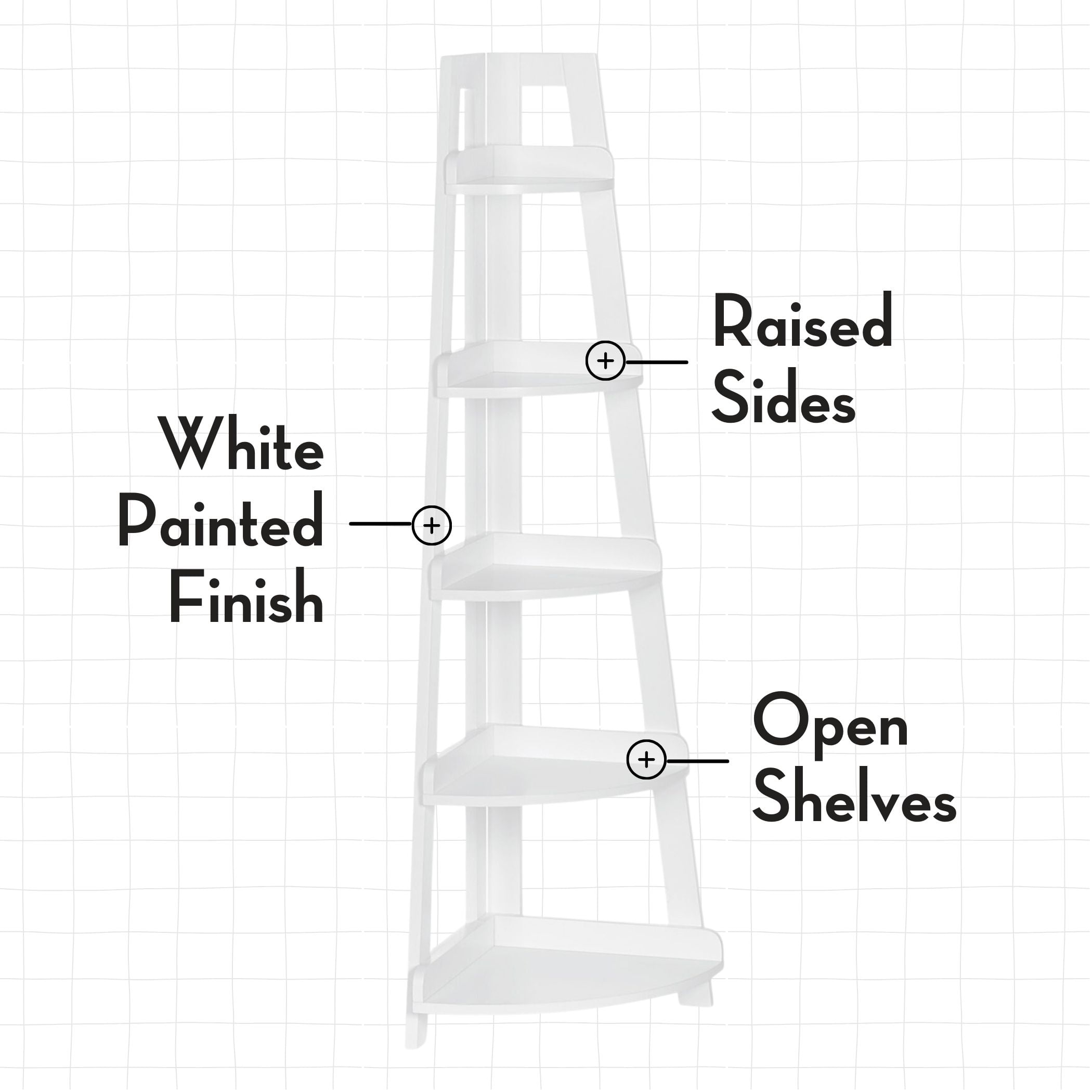 RiverRidge Kids 5-Tier Corner Ladder Playroom Display Bookshelf Organizer- White