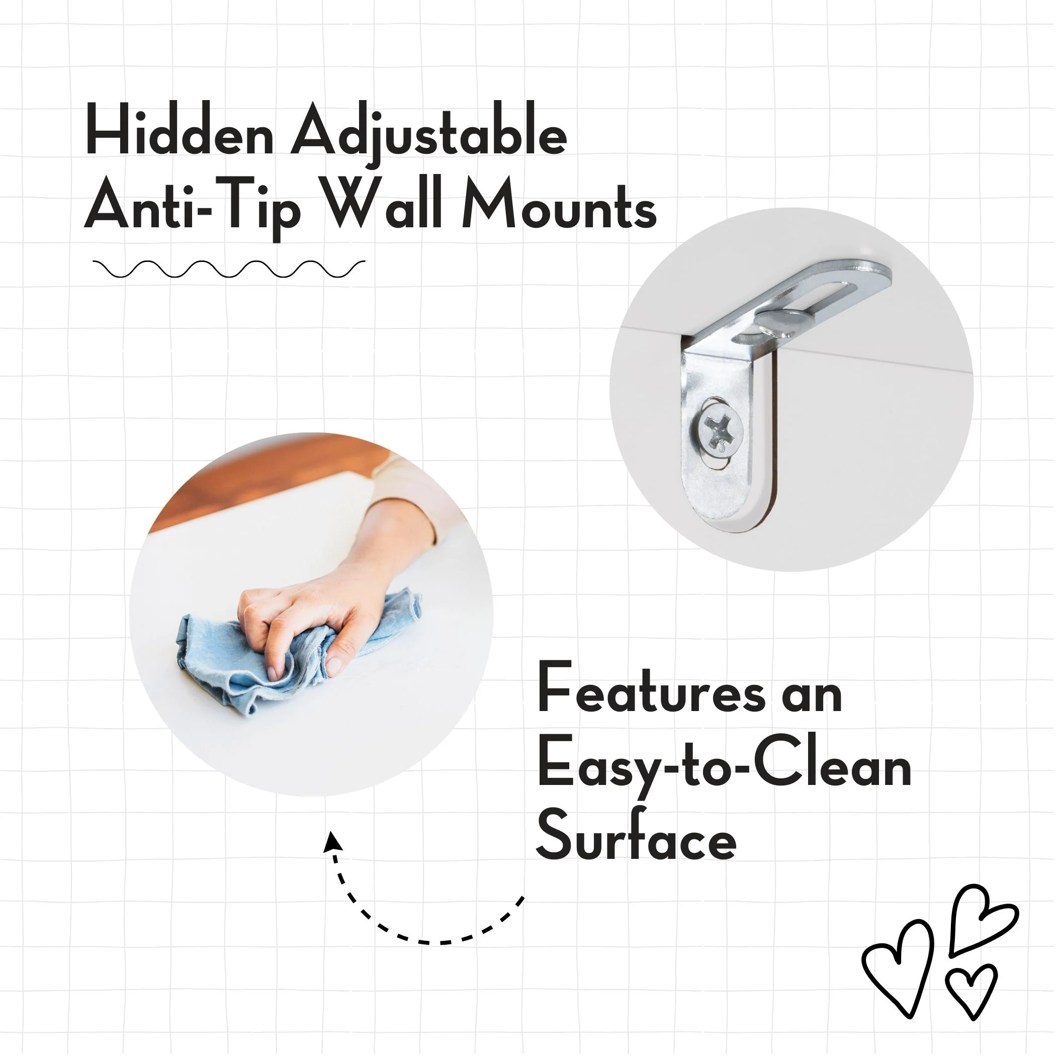 Assembled size: 14.63-in. D x 20-in. W x 54-in. H. Open shelf 1: 7” L x 9.75” W x 6.75” D; Open shelf 2: 8.63” L x 12.13” W x 8.5” D x 10.38”H; Open shelf 3: 9.75” L x 13.75” W x 9.5” D x 10.38”H; Open shelf 4: 11.38” L x 16” W x 11” D x 10.38”H; Open shelf 5: 13.38” L 18.75” W 13” D 10.38”H” This RiverRidge 5 Tier Corner Playroom Ladder Shelf, has so many storage possibilities! Each shelf holds 10 lbs. for a total capacity of 50 lbs. The corner ladder display shelf is made of painted MDF for long lasting durability. Can be used in multiple areas of the home including bathrooms, kid’s playrooms and offices. Showcase your child’s trinkets, their favorite books and their trophies. Perfect for smaller spaces, utilizing corners of your home Pair with additional RiverRidge® kids storage items to give the playroom a fresh, new look. Securely anchor the Ladder Shelf to the wall for enhanced stability with the provided tip-over restraints and wall mounting hardware, along with an easy to follow assembly guide Recommended for children ages 3 and up.