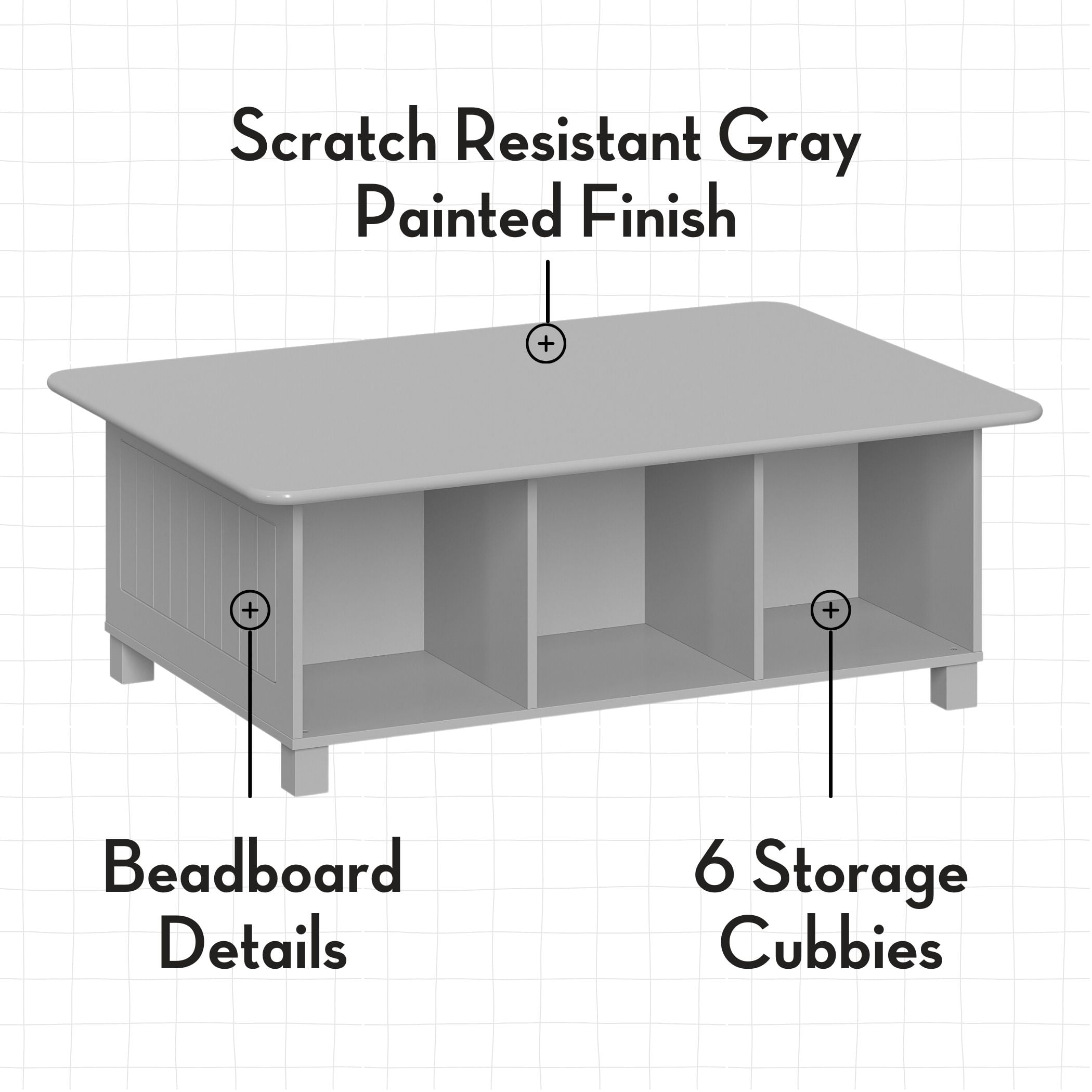 Transform your child’s playroom into an organized oasis with the RiverRidge Kids Desk, Activity and Play Table with 6 Storage Cubbies. Featuring six spacious cubbies, this cube shelf effortlessly corrals toys, books, and art supplies, keeping clutter at bay. The clean white painted finish and low-profile design create a seamless blend with any playroom decor, while the sturdy construction ensures lasting durability. Say goodbye to scattered toys and hello to a well-ordered play area. Bins available for separate purchase. Our kids toys organizer provides ample storage space, allowing your little ones to neatly stash their favorite playthings. With designated compartments, finding and retrieving toys becomes a breeze, fostering independence and responsibility from an early age. Versatility takes center stage with our cube shelf organizer. Beyond serving as a kids’ toy storage organizer, it doubles as a stylish display for cherished mementos or a handy bookshelf. Seamlessly transition from playtime to homework station, all while maintaining an organized and inviting space for your child’s ever-changing needs