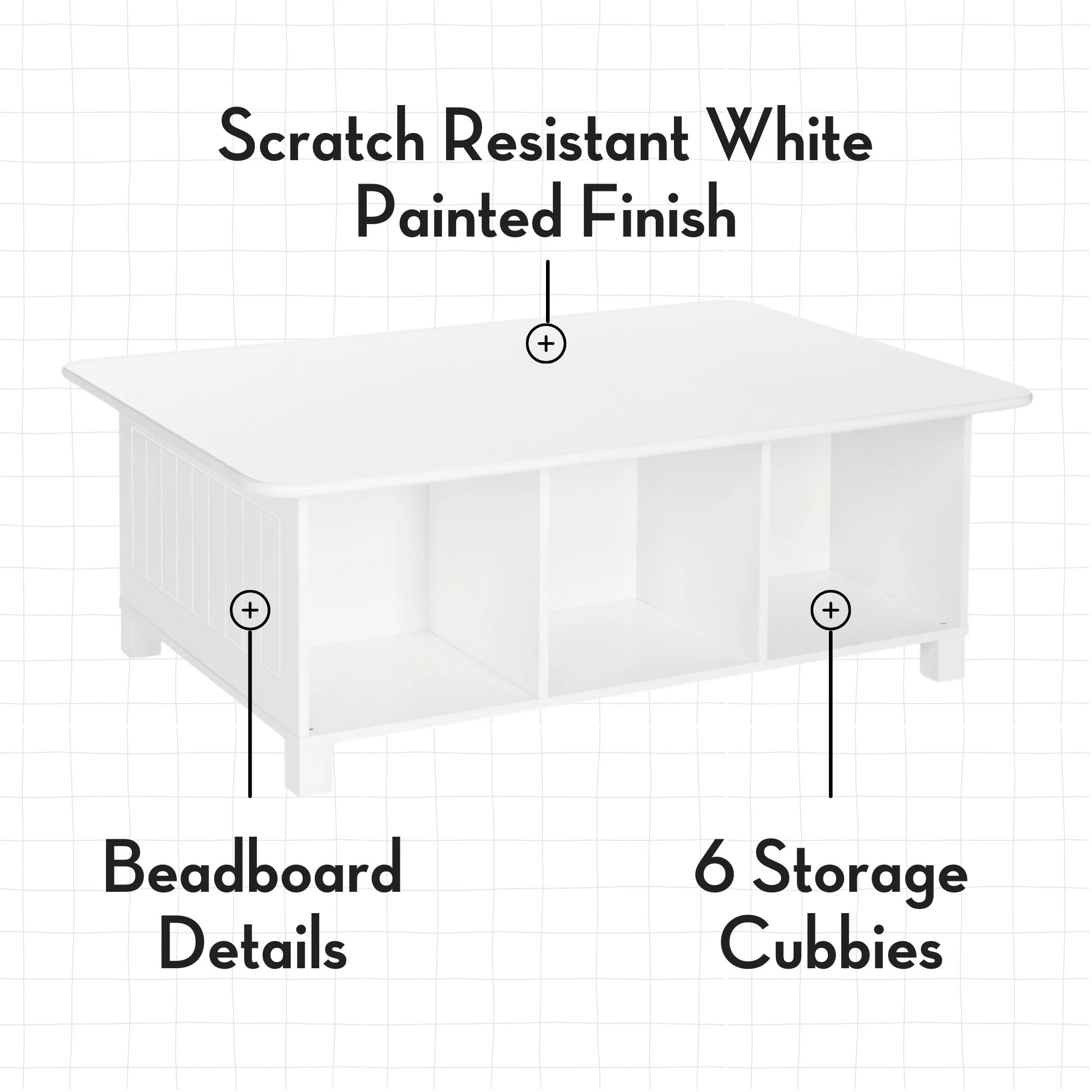 Transform your child’s playroom into an organized oasis with the RiverRidge Kids Desk, Activity and Play Table with 6 Storage Cubbies. Featuring six spacious cubbies, this cube shelf effortlessly corrals toys, books, and art supplies, keeping clutter at bay. The clean white painted finish and low-profile design create a seamless blend with any playroom decor, while the sturdy construction ensures lasting durability. Say goodbye to scattered toys and hello to a well-ordered play area. Bins available for separate purchase. Our kids toys organizer provides ample storage space, allowing your little ones to neatly stash their favorite playthings. With designated compartments, finding and retrieving toys becomes a breeze, fostering independence and responsibility from an early age. Versatility takes center stage with our cube shelf organizer. Beyond serving as a kids’ toy storage organizer, it doubles as a stylish display for cherished mementos or a handy bookshelf. Seamlessly transition from playtime to homework station, all while maintaining an organized and inviting space for your child’s ever-changing needs