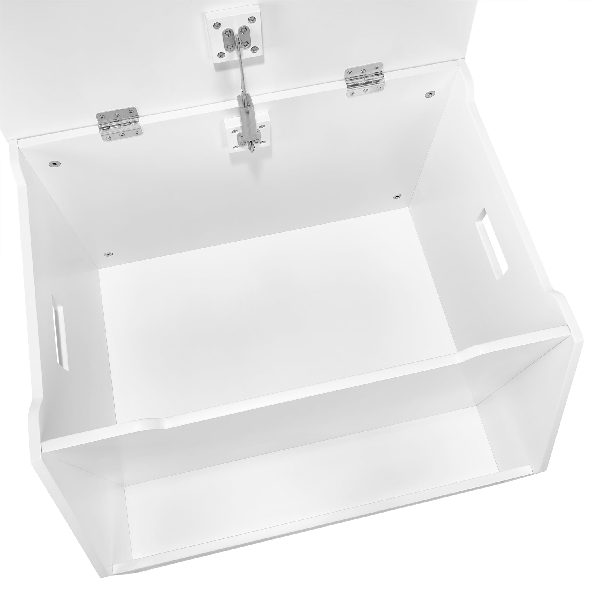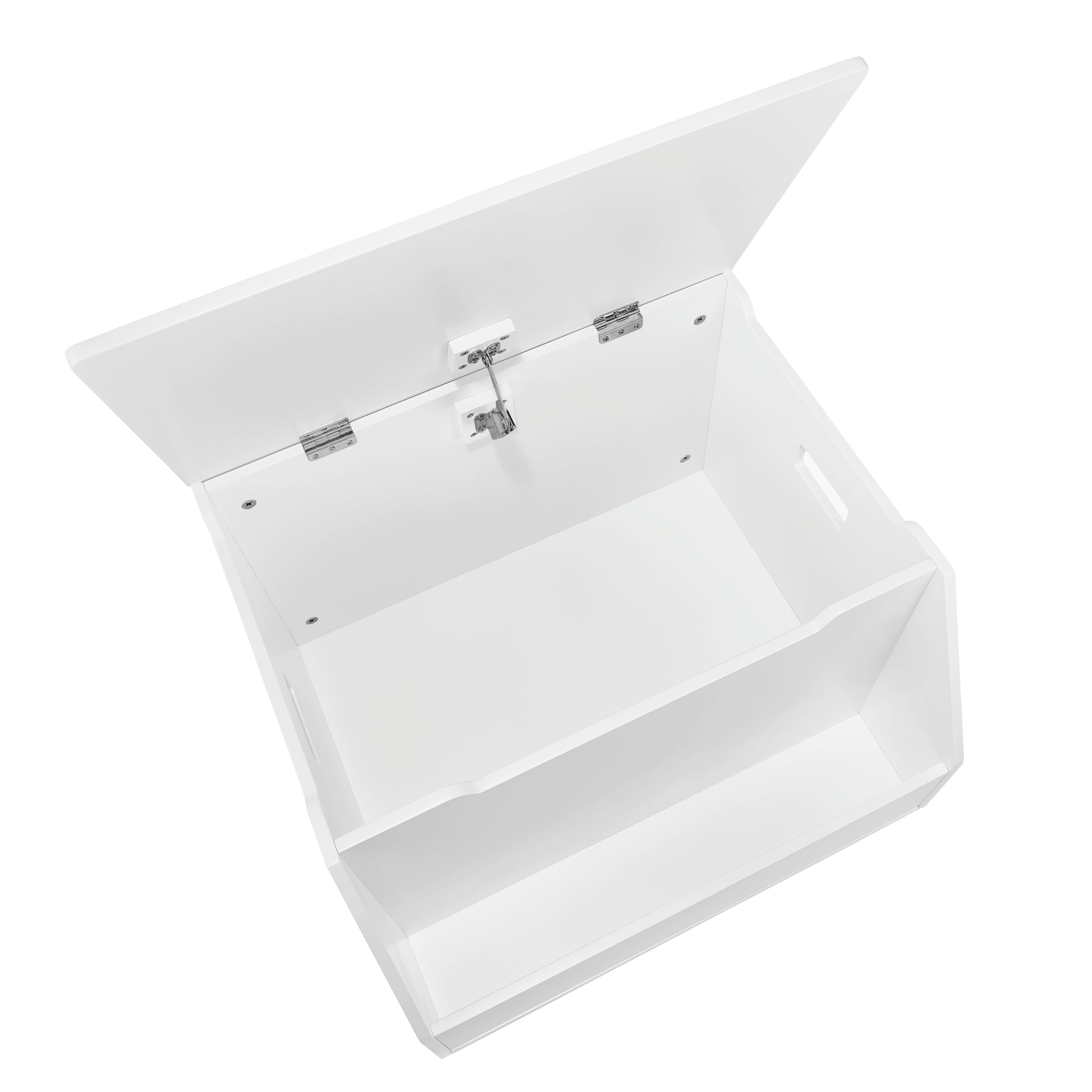 Assembled size: 20-in. D x 23.62-in. W x 16.22-in. H; Interior Dimensions: 22.38″ W x 14.38″ D x 15.188″ H; Exterior Shelf: 22.44″ W x 4.31″ D x 15.38″ H; Top Lid Dimensions 23.563in (W) x 15.688in (D); Side Cut Out – .75″ (H) x 12.25″ (W) x .5″ (D); Front Cut Out – .75″ (H) x 14.5″ (W) x .5″ (D); Handle Cut Out – 1.813″ (H) x 3.625″ (W) x .5″ (D) Keep toys and other kid’s clutter concealed in this contemporary toy box, with a front book rack to showcase your child’s favorite books, activity books or puzzles The toy organizer is made of painted MDF for long lasting durability This toy chest has a spacious interior for concealing toys, games, shoes, and more. Great for all ages; from toddler rooms to big kid rooms Child-safe hinge ensures lid will not close too quickly Pair with additional RiverRidge® kids storage items to give the playroom a fresh, new look. Securely anchor the Toy Storage Organizer to the wall for enhanced stability with the provided tip-over restraints and wall mounting hardware, along with an easy to follow assembly guide Recommended for children ages 3 to 8.