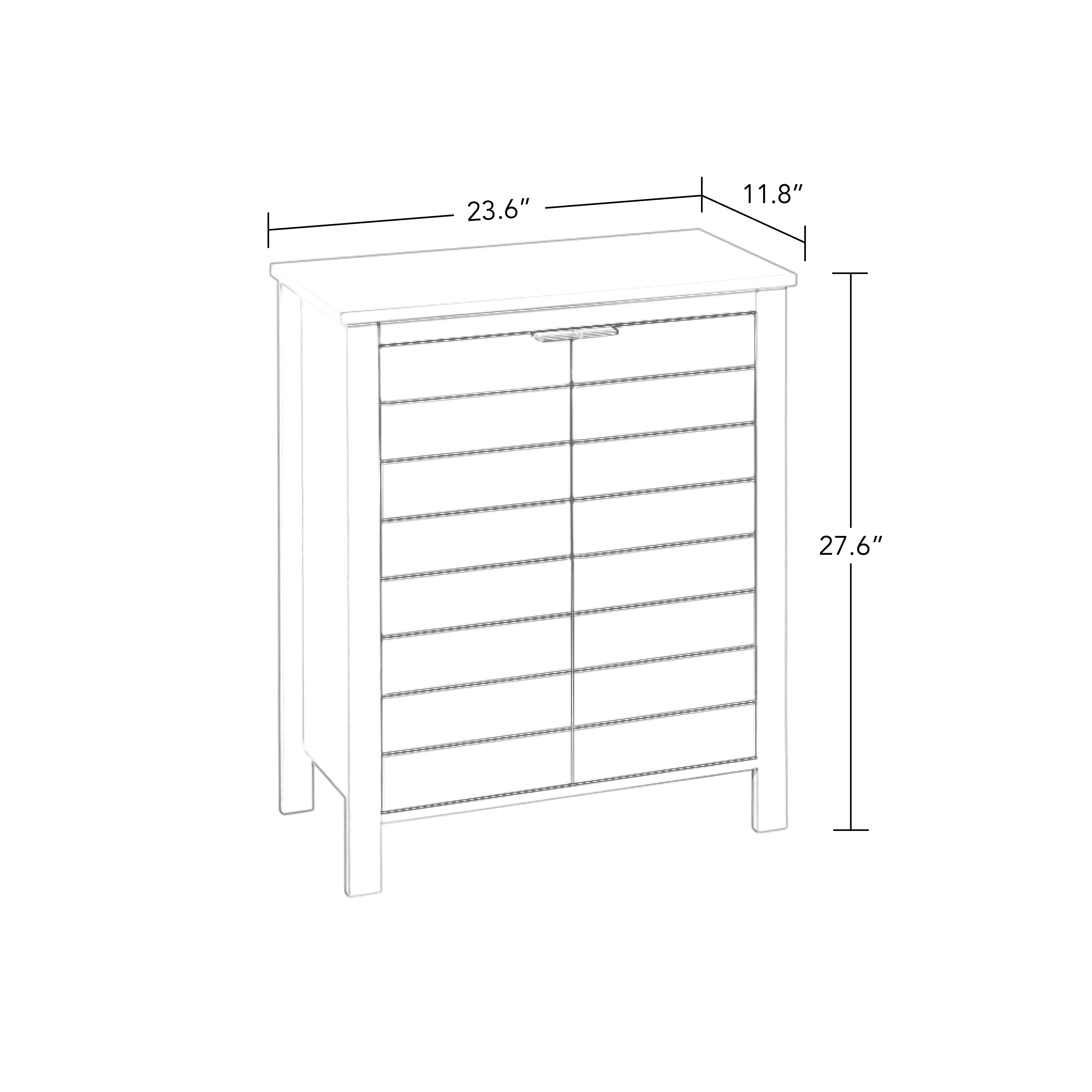 Assembled size: 23.63″ W x 11.81″ D x 27.56″ H. Weighs 27.45 pounds. Top of Cabinet: 23.63”W x 11.81”D, Interior Shelf: 19.69”W x 10.81”D, Space Between Interior Shelves: Adjustable (10.125″ – 12.625) The bathroom floor cabinet will hold up to 20 lbs. per shelf for a total weight of 60 lbs. The bathroom floor storage cabinet is made of painted MDF for long lasting durability. The freestanding floor cabinet features 2 doors with horizontal grooves, flat silver handles, and adjustable door hinges and a 3-position interior adjustable shelf. Includes a fixed open top bathroom shelf, an adjustable interior shelf and 2 interior shelves – one adjustable and one fixed. The sleek and classic design is perfect for bathroom towel storage as a linen cabinet, laundry room storage cabinet or accent cabinet with doors. The small linen cabinet features an anti-tip anchor bracket that secures it firmly to the wall.