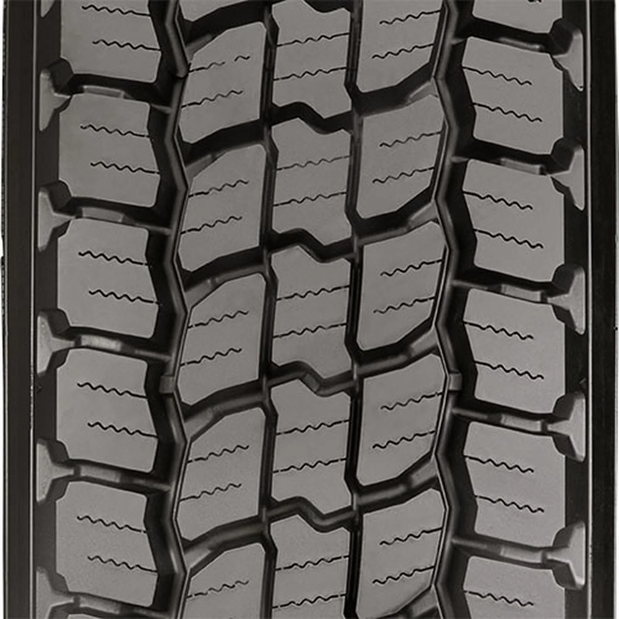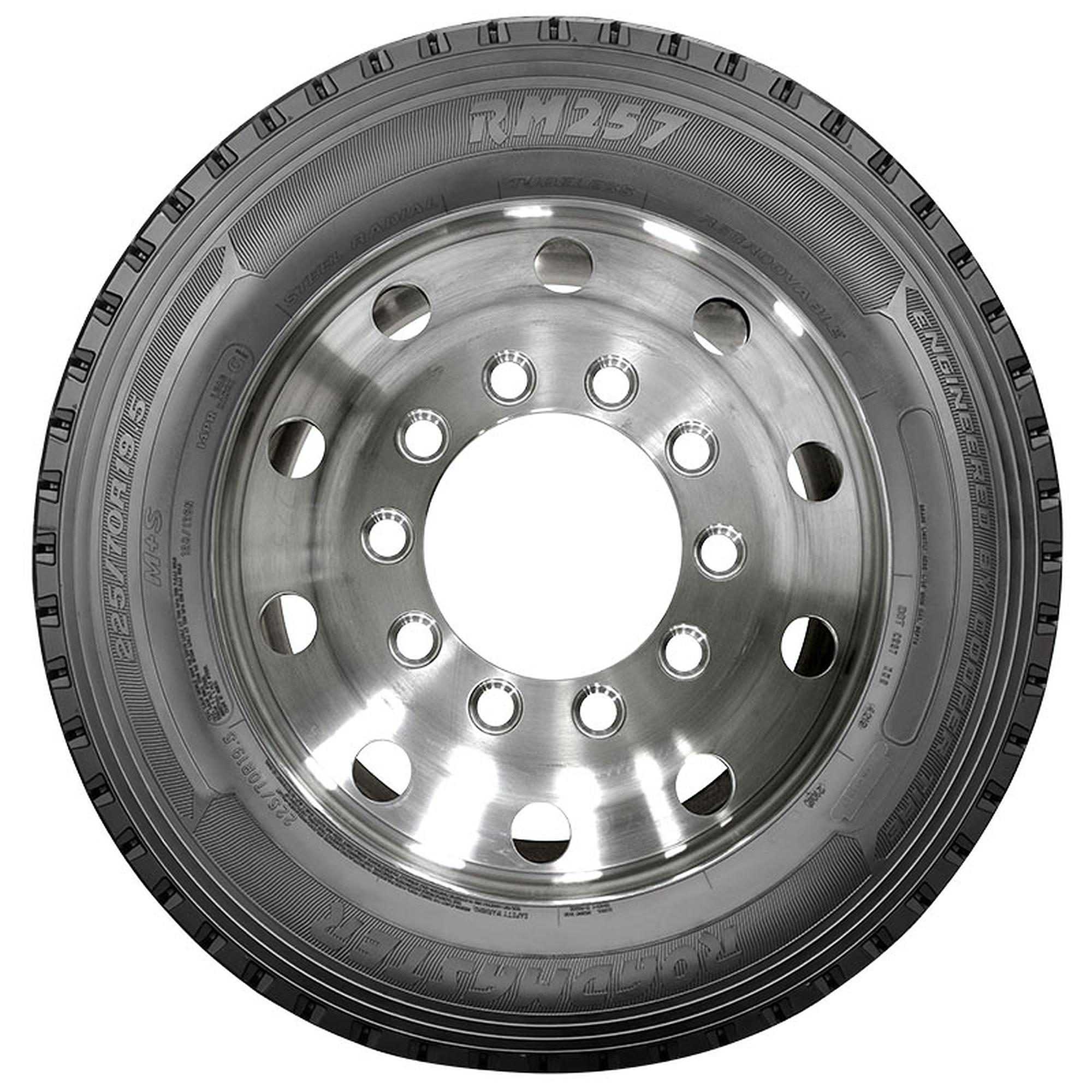 The RM257™ is Roadmaster’s open shoulder pick-up and delivery drive tire designed to perform in all weather conditions. 3D siping, shoulder pockets, and chevron grooves all combine to provide this tire with Three-Peak Mountain Snowflake certification for operation in severe weather.