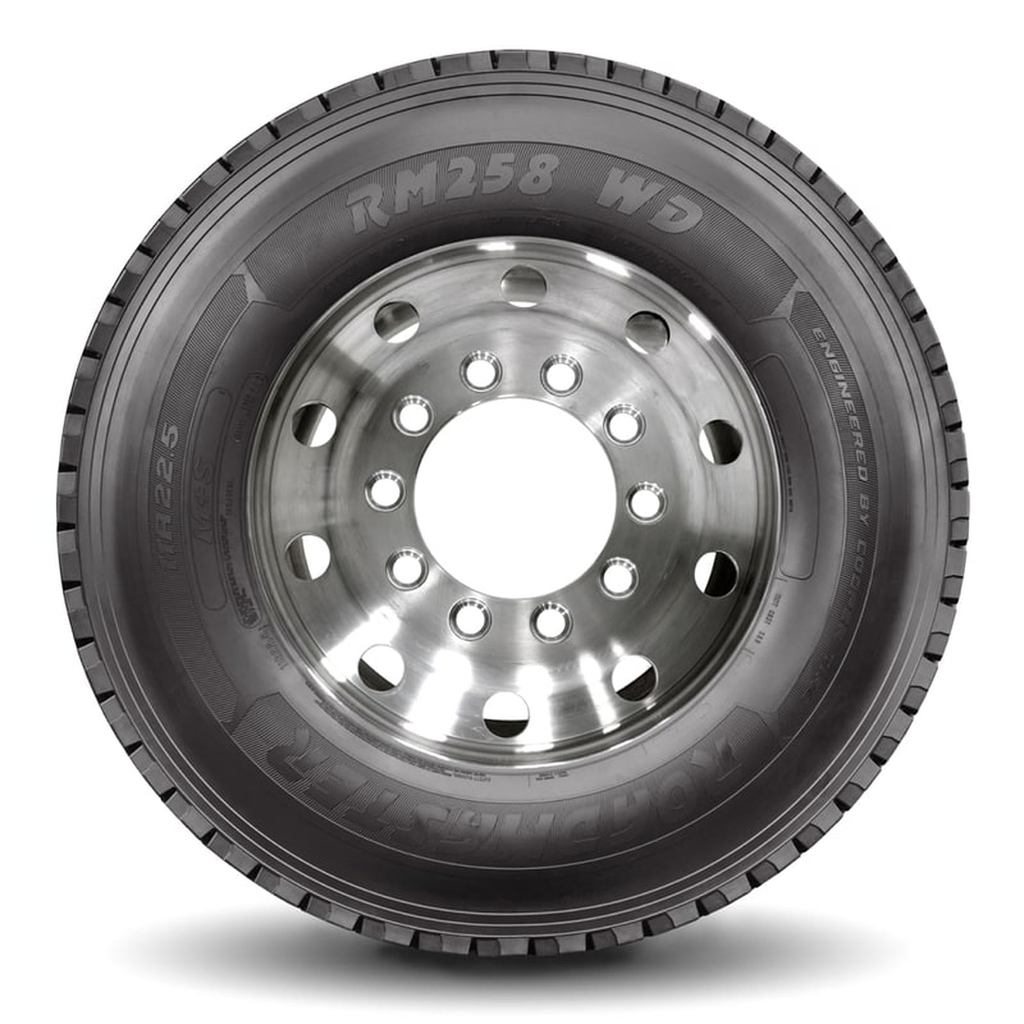 Roadmaster RM258 WD 11R24.5 149L H OVERVIEW The RM258 WD from Roadmaster is an open shoulder regional drive tire, designed for superior performance in severe winter conditions. Full depth 3D siping, chevron grooves, and shoulder notches provide the traction needed for enhanced performance in adverse weather conditions. The severe weather rated, Three Peak Mountain Snowflake certified tire also includes a high tensile four-belt construction and stone ejectors to provide the durability that fleets require.