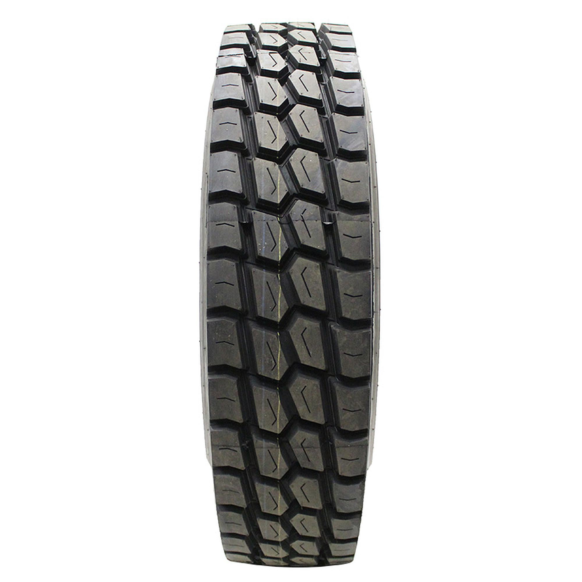 Designed for use on the drive axle of semi-trucks in rough service applications Extra deep tread depth for consistent performance, even as the tire wears down Cut-and-chip resistant rubber compound guards the tire against damage Stone ejectors built into tread grooves to protect the casing Engineered with a curb guard and built-in sidewall depth indicator A cool-running base compound, combined with the 4-belt construction is designed to resist stone penetrations, to deliver the durability and retreadability fleet owners expect Cut and chip resistant tread compound is designed to tackle mixed service requirements 30/32 inch of tread provides excellent traction and durability Size: 11R24.5 Load Range: H Product May Vary From Picture Wheel/Rim Not Included
