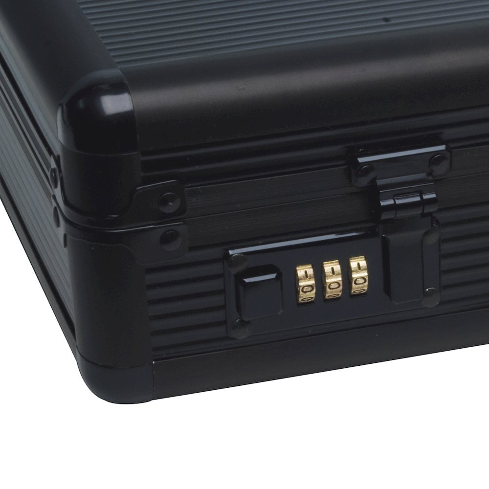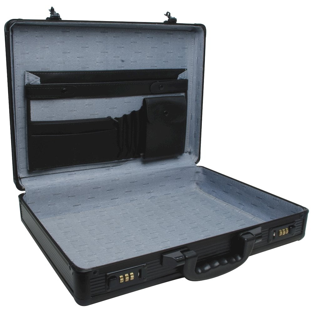 Roadpro Unisex Anti-Theft Aluminum Briefcase with Combination Locks, Black Features two changeable combination locks for enhanced security Lined interior with pockets for organized storage of notepads pens and small items Durable aluminum exterior designed for maximum strength and minimal weight Roomy handle for easy portability Sized to accommodate most laptops and important documents Unisex design suitable for both men and women