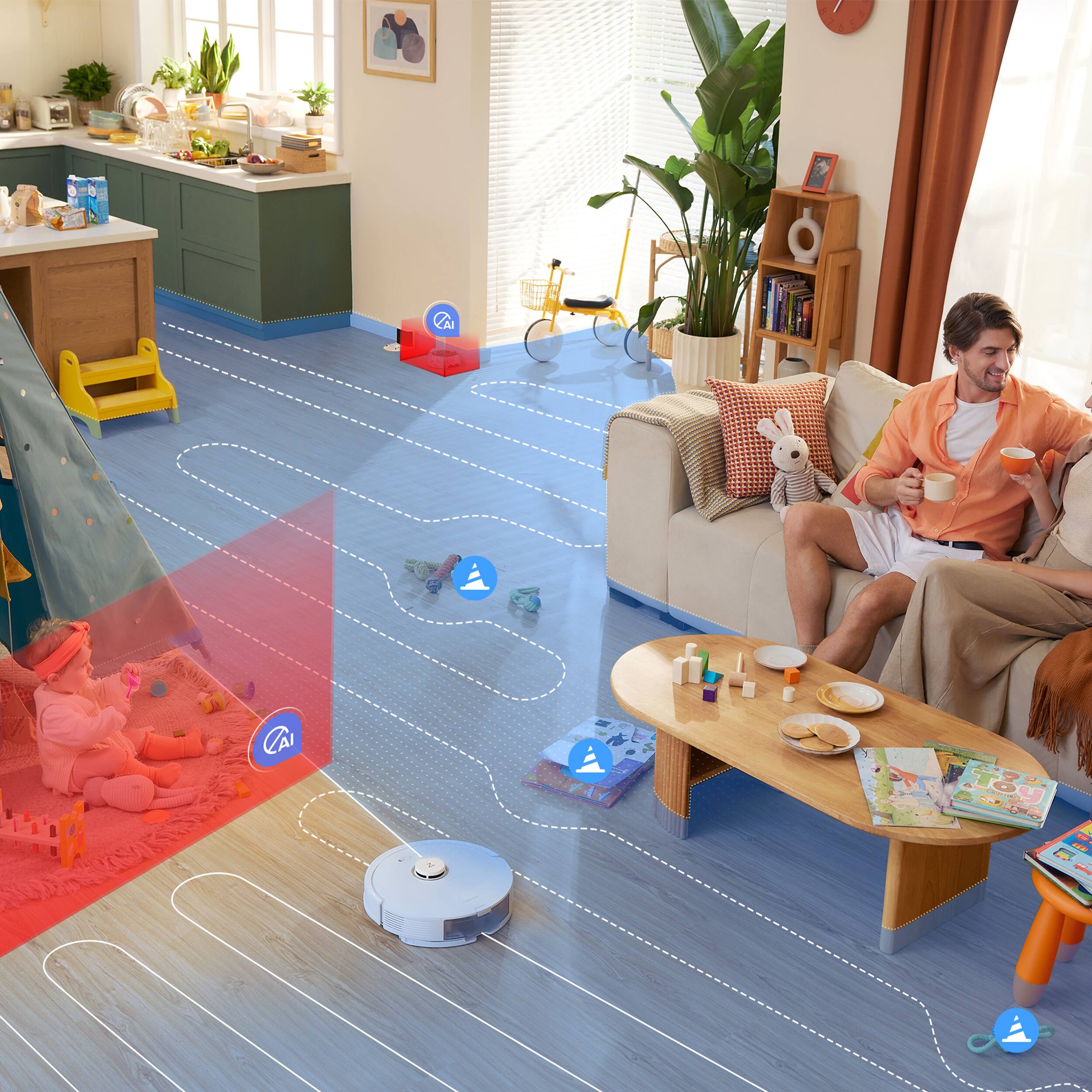 Detect and avoid objects on the floor easily, so you don’t have to pick them up before starting a cleanup. By suggesting No-Go Zones for stairs and easy-to-get-stuck places, the Q8 Max prevents mishaps, allowing you peace of mind while it navigates your home.