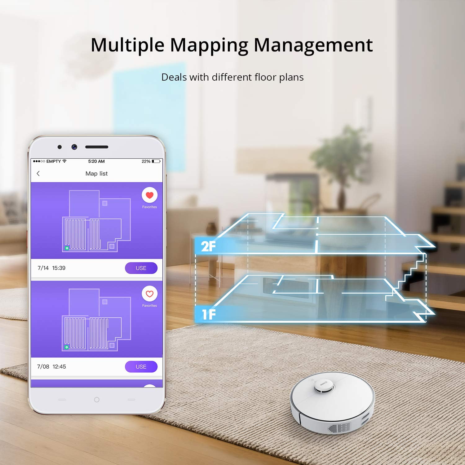 Robot Vacuum Cleaner, 360 S5 Robotic Vacuum with Laser Navigation, Smart Sensor, Auto-Recharge and Resume, Washable Filter, Multi-Map Management, Off Limit App Control, Cleans Pet Hair, Carpets
