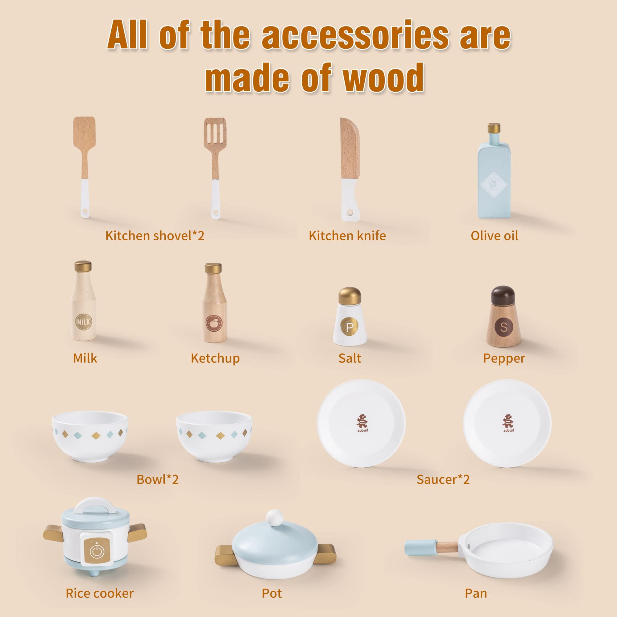 Click this link to visit our store. ➡️➡️??ROKR store-gift for 14+child & Adult?? ➡️➡️??Rolife store-gift for 14+child & Adult?? ➡️➡️??Robotime store-gift for 14+child & Adult?? ➡️➡️??Robud store-gift for 3+child?? Features: Abundant kitchen accessories, 15 pieces total Realistic Design and fun game experience Ample storage space of shelves, cabinets, and ovens Rotating button of stovetop Simulate the most basic kitchen scenes Made of MDF and high-quality wood,stable structure Improve children’s hands-on ability and motor skill development Suit for ages of 3+ years Specifications: Material: wooden, MDF Color: Blue Overall Dimension: 29.7″ L x 13.8″ W x 38.6″ H Assembly required Package included: Detailed assembly instructions (easy to assemble) All wooden components required 15 Pieces kitchen accessories included: 2* Kitchen shovel 1* Kitchen knife 1* Olive oil 1* Milk 1* Ketchup 1* Salt 1* Pepper 2* Bowl 2* Saucer 1* Rice cooker 1* Pot 1* Pan