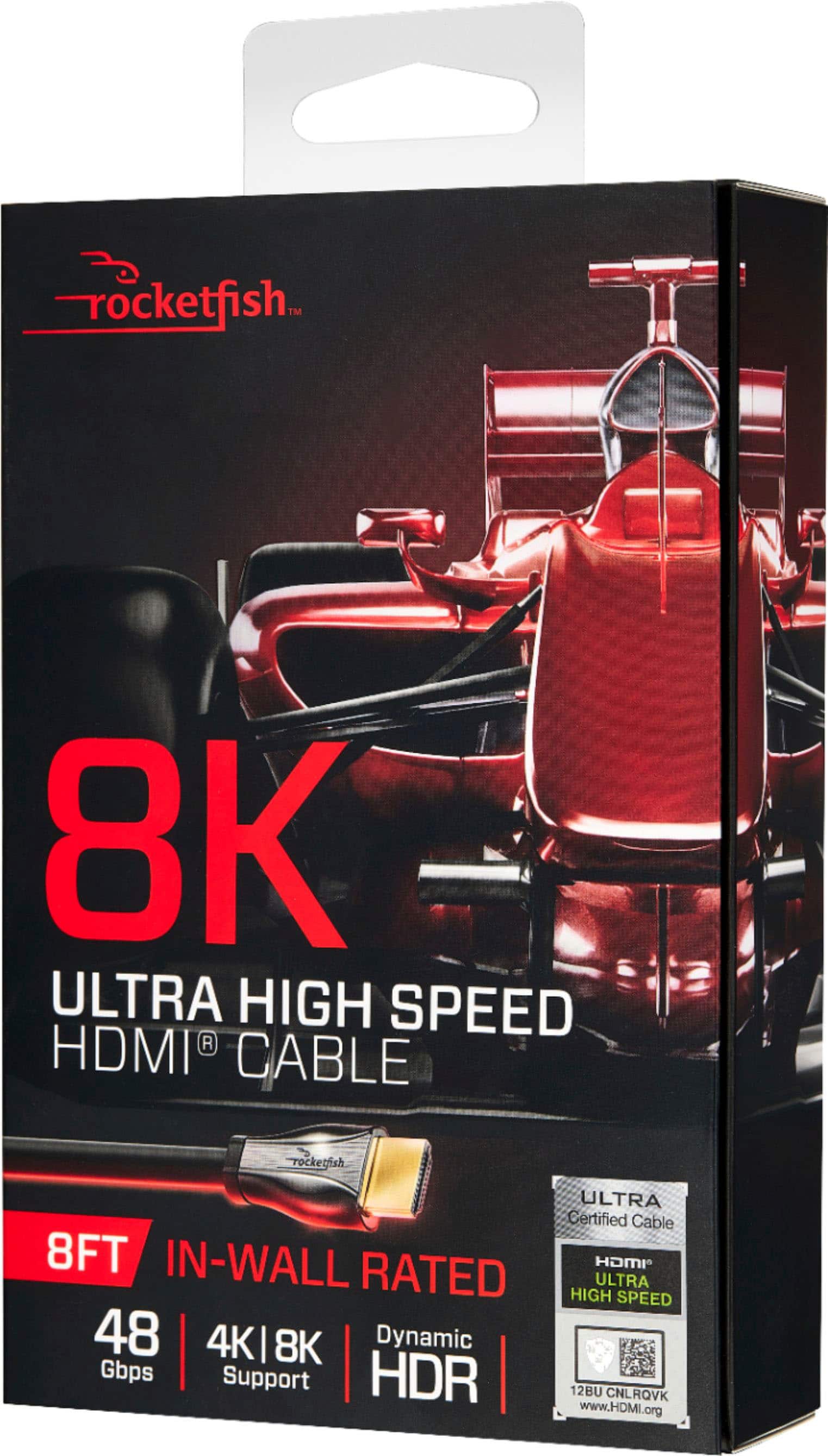 You’re done messing around with low-quality cables. You deserve the absolute highest quality HDMI has to offer, and Rocketfish is prepared to deliver. This Ultra High Speed HDMI Certified cable boasts an incredible 4K @ 120 Hz, 8K @ 60 Hz and even up to 10k video experience. It features a blistering fast bandwidth speed of 48 Gbps for flawless picture quality and is certified for in-wall use. It supports must-needed performance enhancers such as Quick Frame Transport, Dynamic HDR and Variable Refresh Rate for an overall unbeatable video experience. Sound quality is equally important, with support for DTSMaster, DTS-X and Dolby TrueHD/Atmos formats. Because it’s backwards compatible to work with all HDMI components, you’ll get a lifetime of use out of the Rocketfish RF-HG08N19 8′ 8K Ultra High Speed HDMI 2.1 Certified Cable.