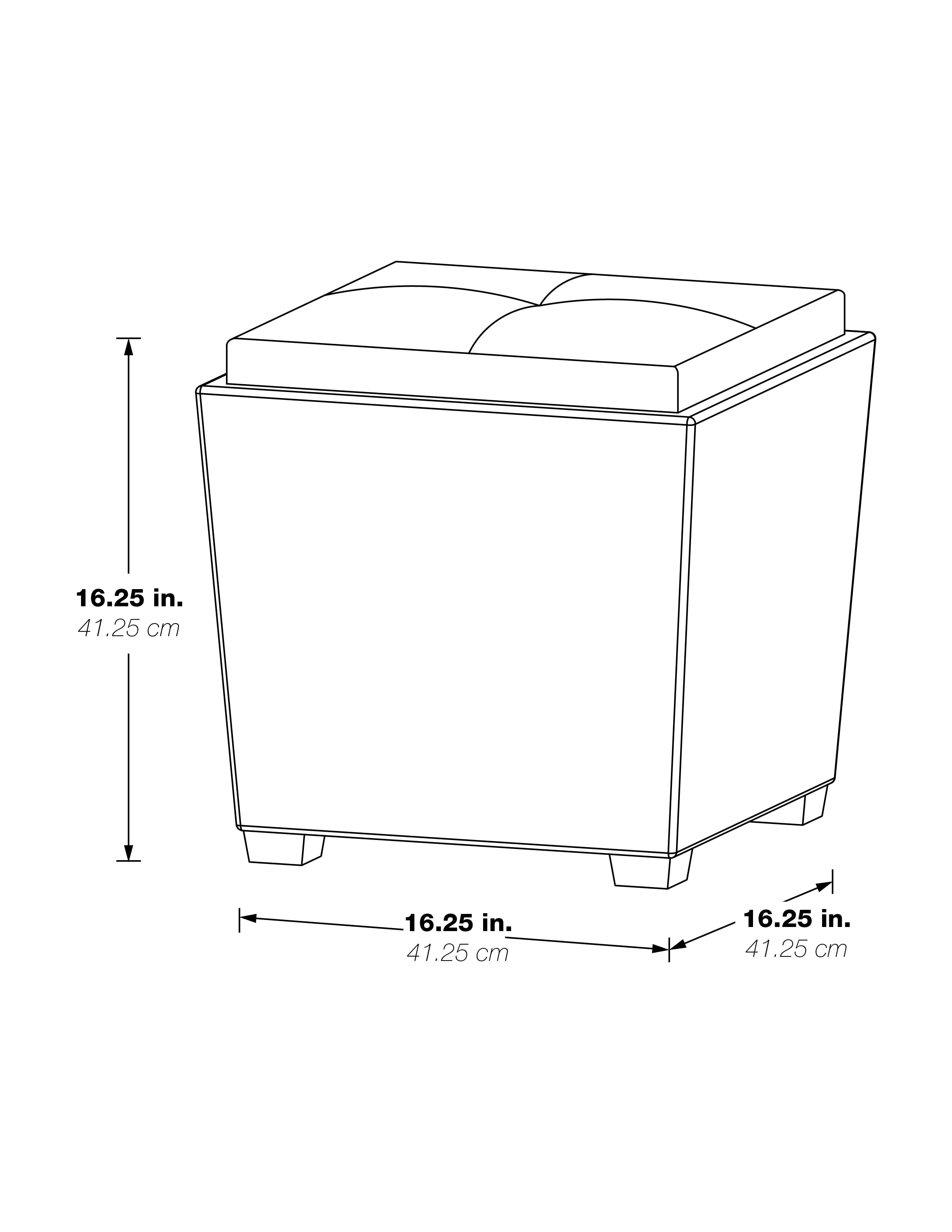 Fun contemporary storage solution Great casual seating solution Perfect toy storage in guest room Excellent vanity seating Tufted padded lid Lid flips to a handy serving tray Double stitching detail Fully lined interior Reversible Tray Lid Storage Dim: 12.5″W x 12.5″D x 2″H
