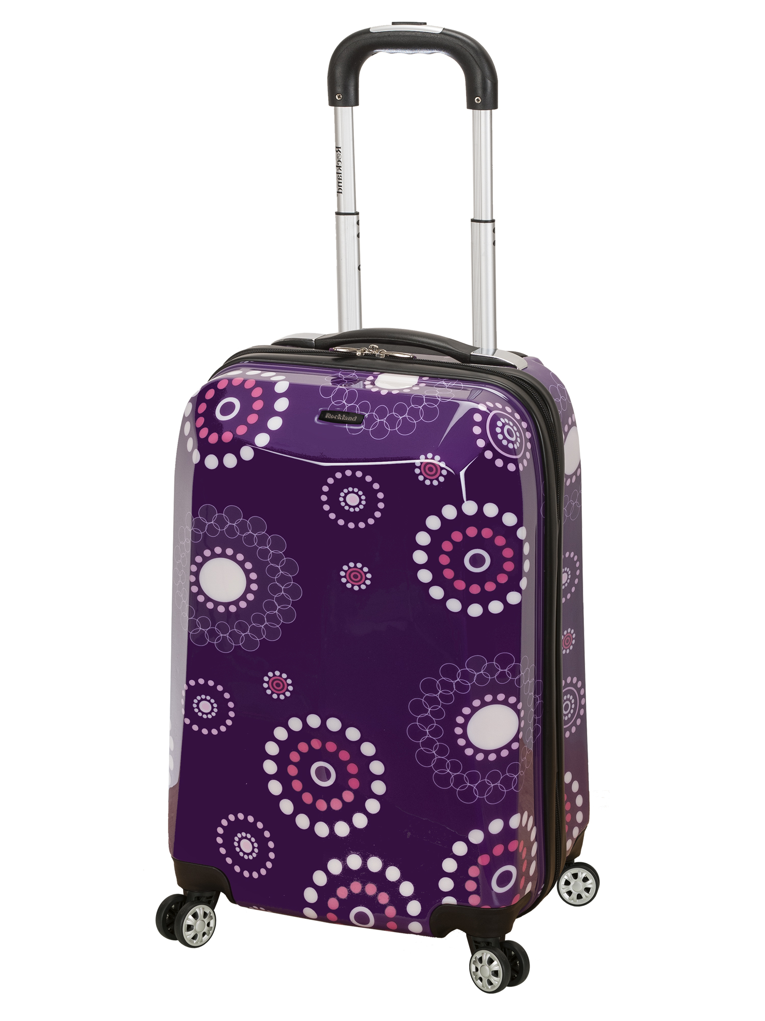 Rockland 20” Unisex 3-Piece Hardside Luggage Set, Polycarbonate, Black Multi-directional spinner wheels for easy maneuverability Modern internal chrome telescoping handle with push button mechanism Interior mesh and zip pocket for organized packing Elastic pocket for additional storage options Available in three sizes: 20″ (6 lbs), 24″ (8 lbs), and 28″ (10 lbs)