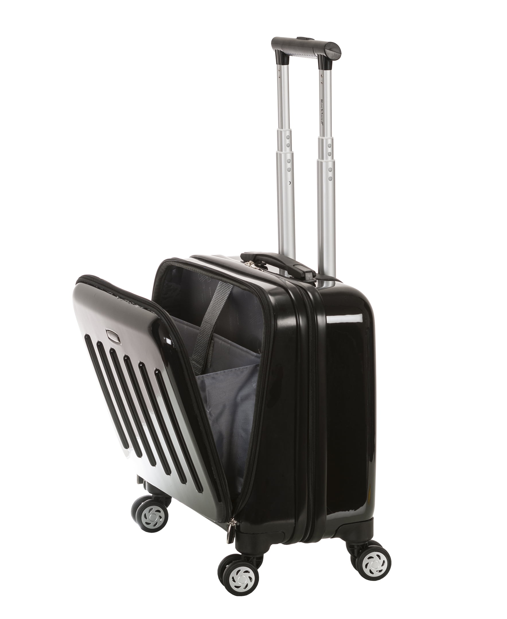 Push-button, self-locking internally stored retractable handle system Ergonomic and comfortable padded top grip handles Front full size zipper-secured pocket with business tool organizer Large middle compartment for files, catalogs and magazines Three internal organizational pockets for all your traveling needs Fits most 15-inch to 15.4-inch widescreen laptops Zippered mesh compartment to safely store your most sensitive documents