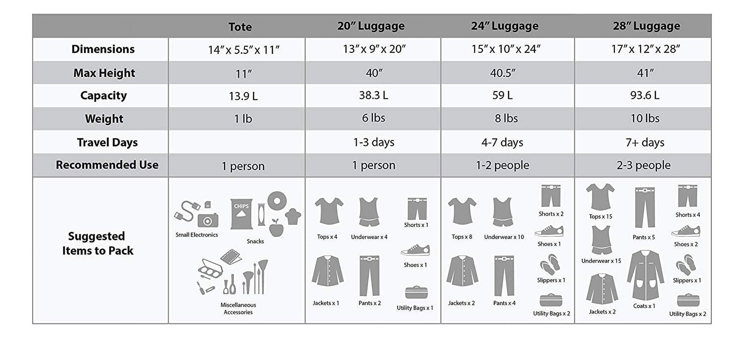 Clear in-line skate wheel system for smooth ride Push-button self-locking internally stored retractable handle system Ergonomic and comfortable padded top and side grip handles Two front full size zipper-secured pockets Three internal organizational pockets for all your traveling needs Each upright’s interior is fully lined with a durable and elegantly imprinted lining Elegant silver pewter heavy duty industrial hardware Carry-On Flight Tote Bag features include: elegantly imprinted full interior lining, detachable and adjustable non-slip shoulder strap, spacious main compartment, maximum strength industrial hardware 19-inch Carry-on Upright: 19 inches high x 13 inches wide x 8 inches expandable to 10 inches deep. 6 lbs. 24-inch Upright: 24 inches high x 16 inches wide x 10 inches expandable to 12 inches deep. 8 lbs. 28-inch Upright: 28 inches high x 18 inches wide x 12 inches expandable to 14 inches deep. 9 lbs Carry-On Flight Tote Bag: 12 inches wide x 11 inches high x 5.5 inches deep ? 1 lb