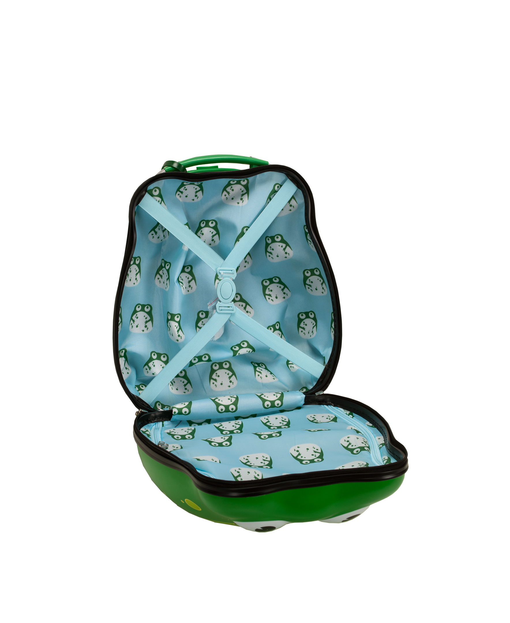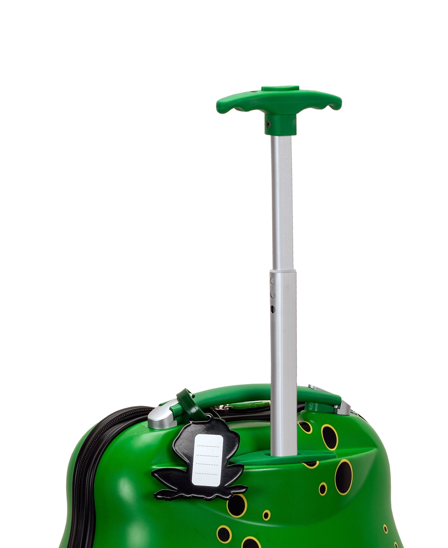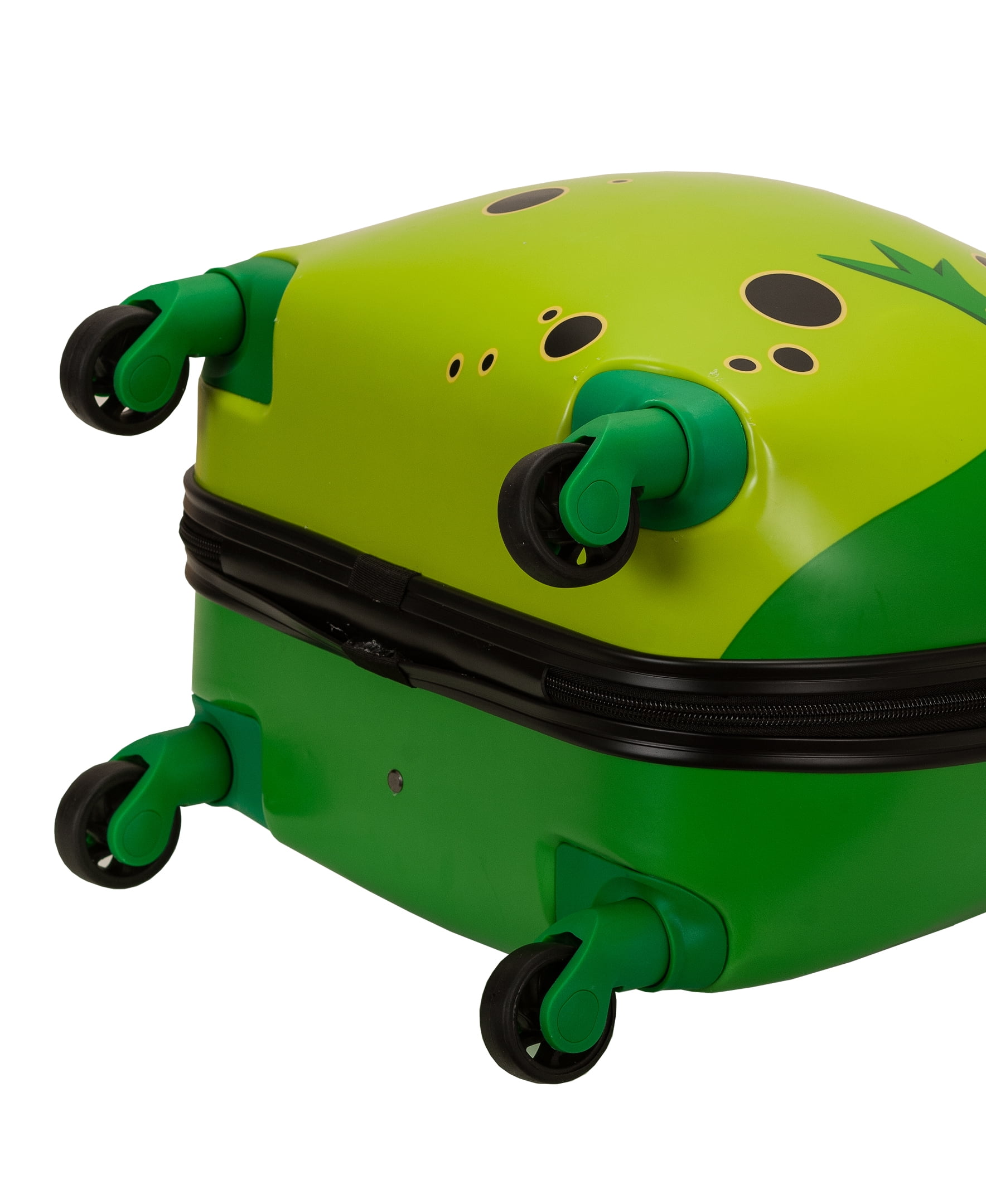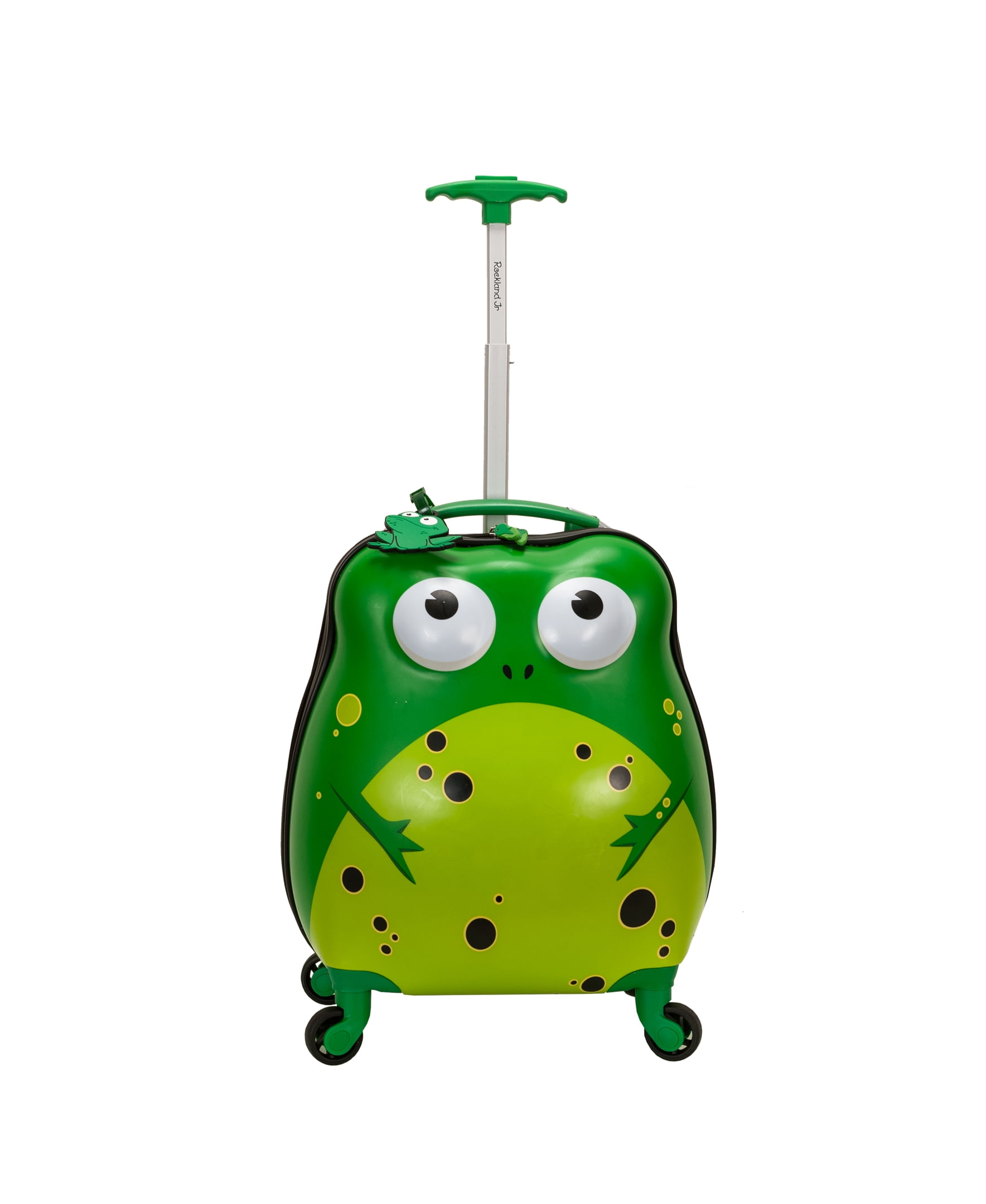 Fun 3 dimensional animal character on hardsided durable polycarbonate shell will keep your little traveler company while functioniing perfectly as a carryon or weekend travel piece. 360 degree turn wheels with telescoping handle.