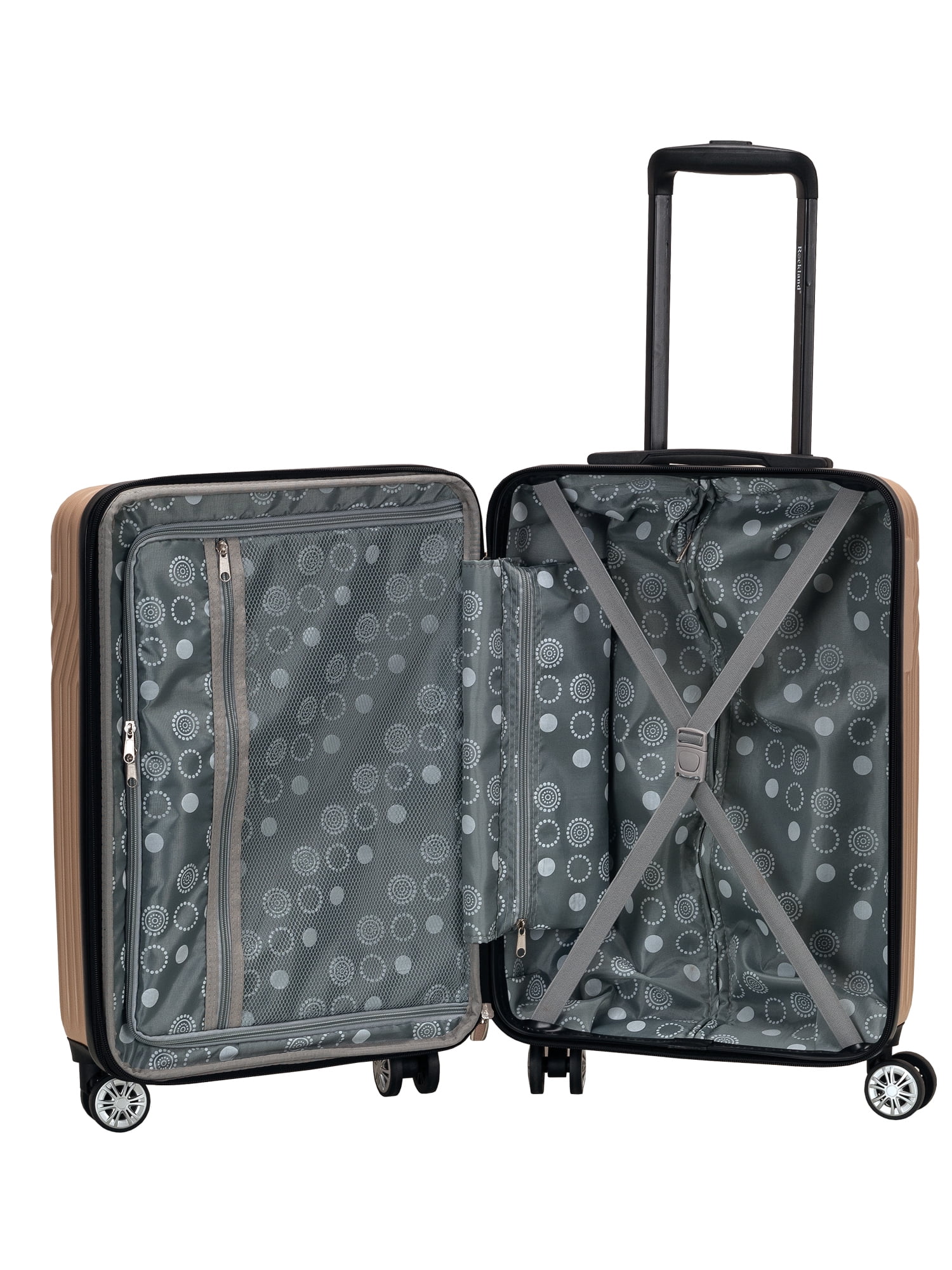 Lightweight yet extremely durable ABS/Polycarbonate Material Non-expandable Multi-directional spinner wheels for easy maneuverability Sturdy ergonomic aluminum telescoping handle interior mesh and zip pocket and elastic pocket 20″ x 13″ x 9″, 7lbs; 24″ x 16″ x 10″, 9 lbs; 28″ x 19″ x 12″, 11 lbs