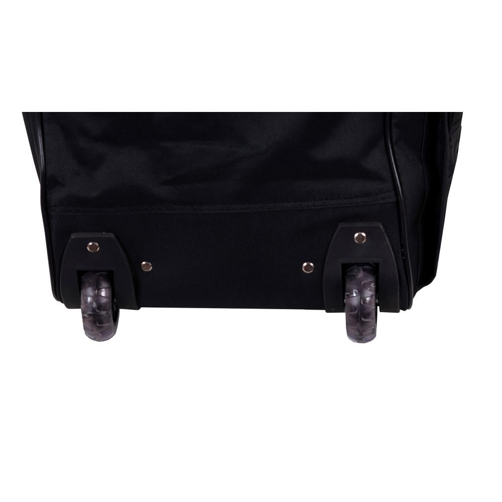Clear in-line skate wheel system for smooth ride Push-button self-locking internally stored retractable handle system Ergonomic and comfortable padded top and side grip handles Two front full size zipper-secured pockets Three internal organizational pockets for all your traveling needs Each upright’s interior is fully lined with a durable and elegantly imprinted lining 19-inch Carry-on Upright: 19 inches high x 13 inches wide x 8 inches expandable to 10 inches deep. 6 lbs. 28-inch Upright: 28 inches high x 18 inches wide x 12 inches expandable to 14 inches deep. 9 lbs The matching duffel has many uses: take it to the gym, tennis court, or on a short trip; there’s room for everything. Measures approximately 22 inches long x 11 inches wide x 12 inches high and weighs 4.45 pounds