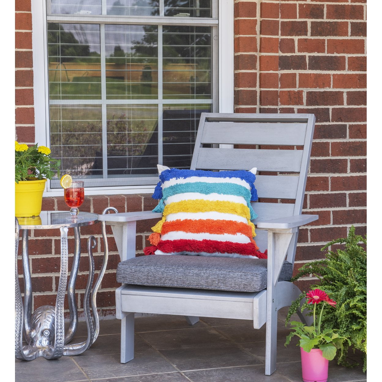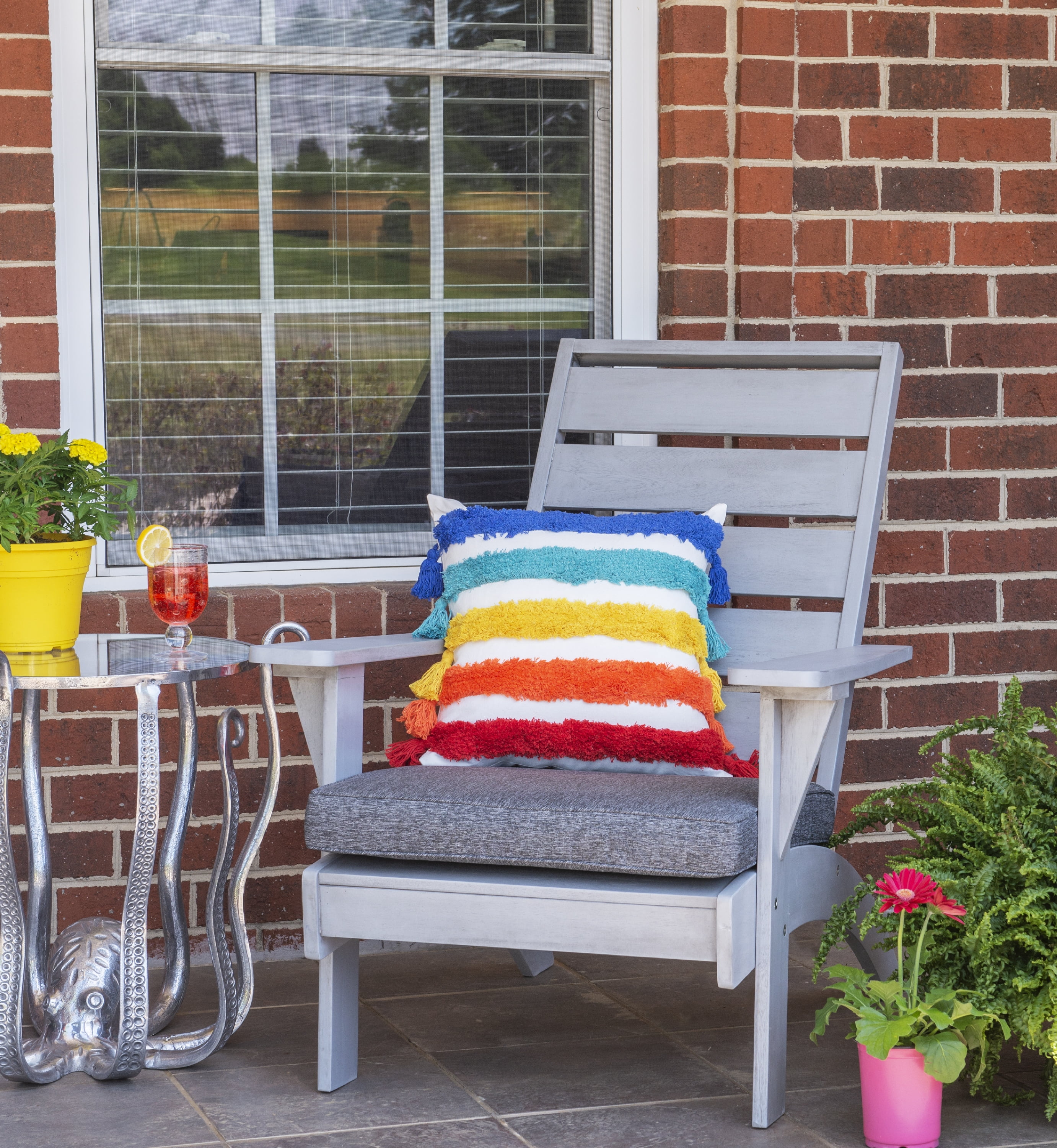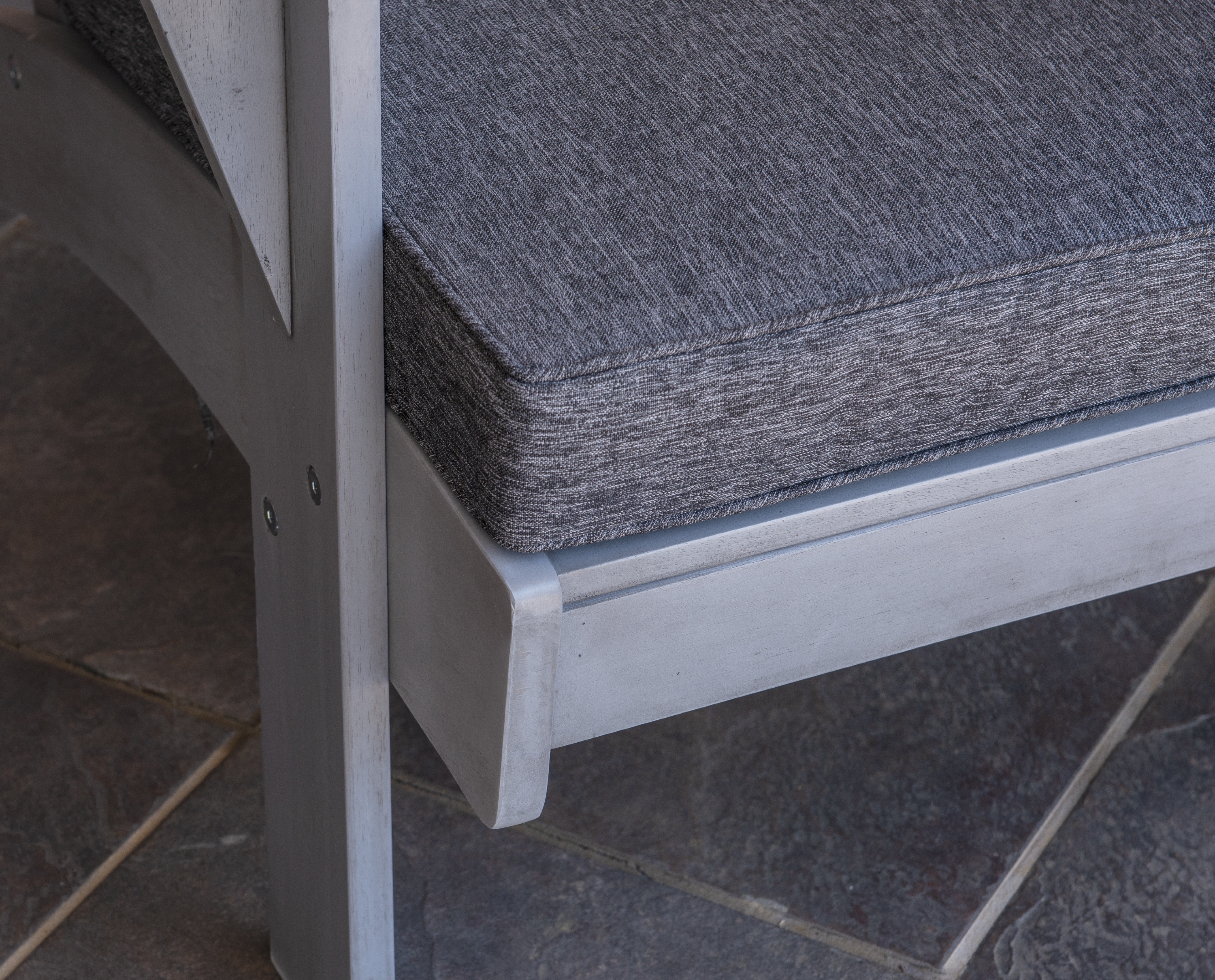 Color: Grey Bullet Feature 3: 100 percent polyester fade-resistant fabric Bullet Feature 2: Grey finish Bullet Feature 1: Outdoor Bullet Feature 5: Sturdy and durable Bullet Feature 4: 3.15in seat cushion included Weight (lbs.): 20.94 lb Length (in.): 29.13 Width (in.): 35.83 Height (in.): 37.8