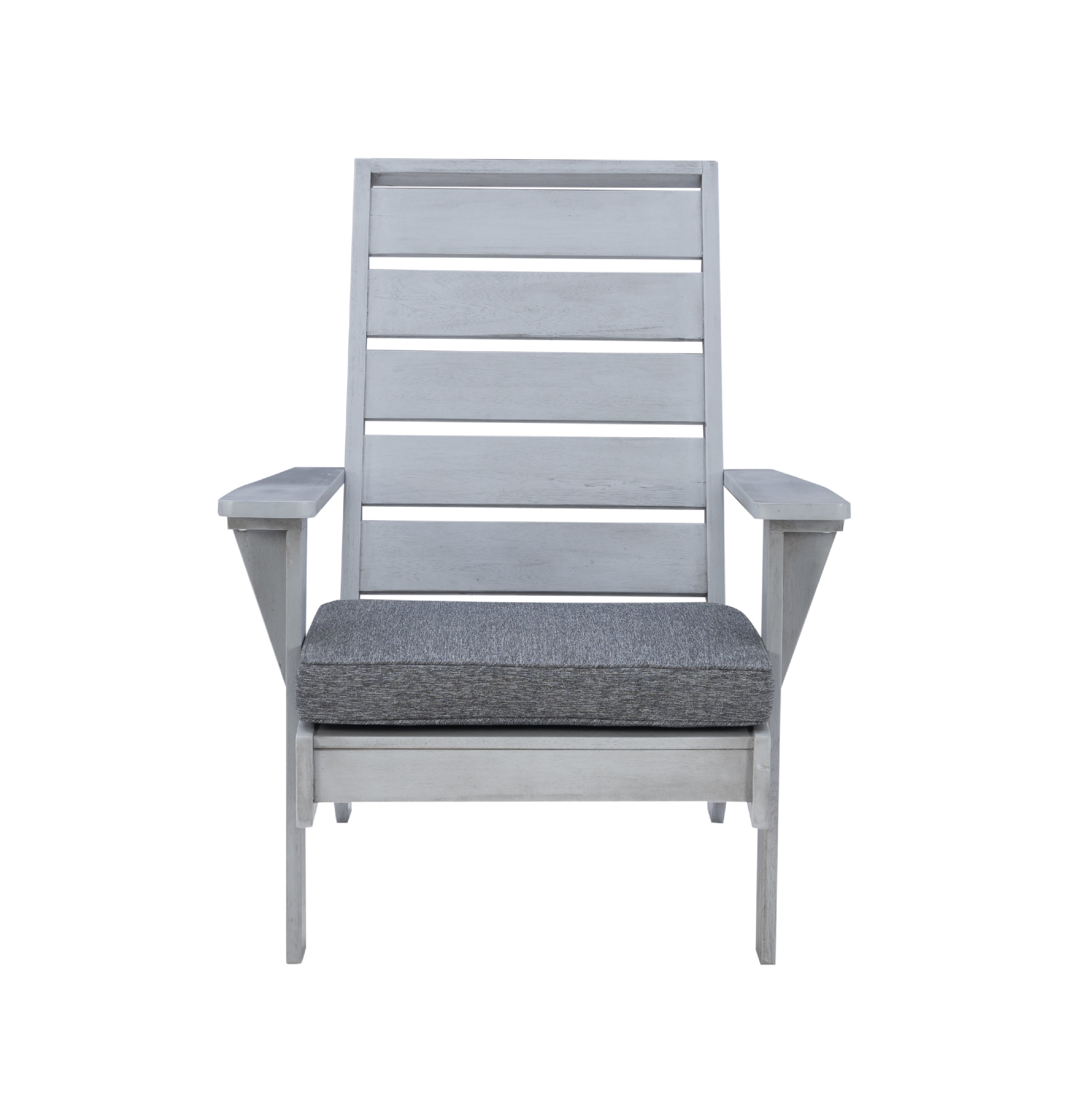 Linon Rockport Slat Back Acacia Outdoor Lounge Chair with Cushion, Gray/Dark Gray