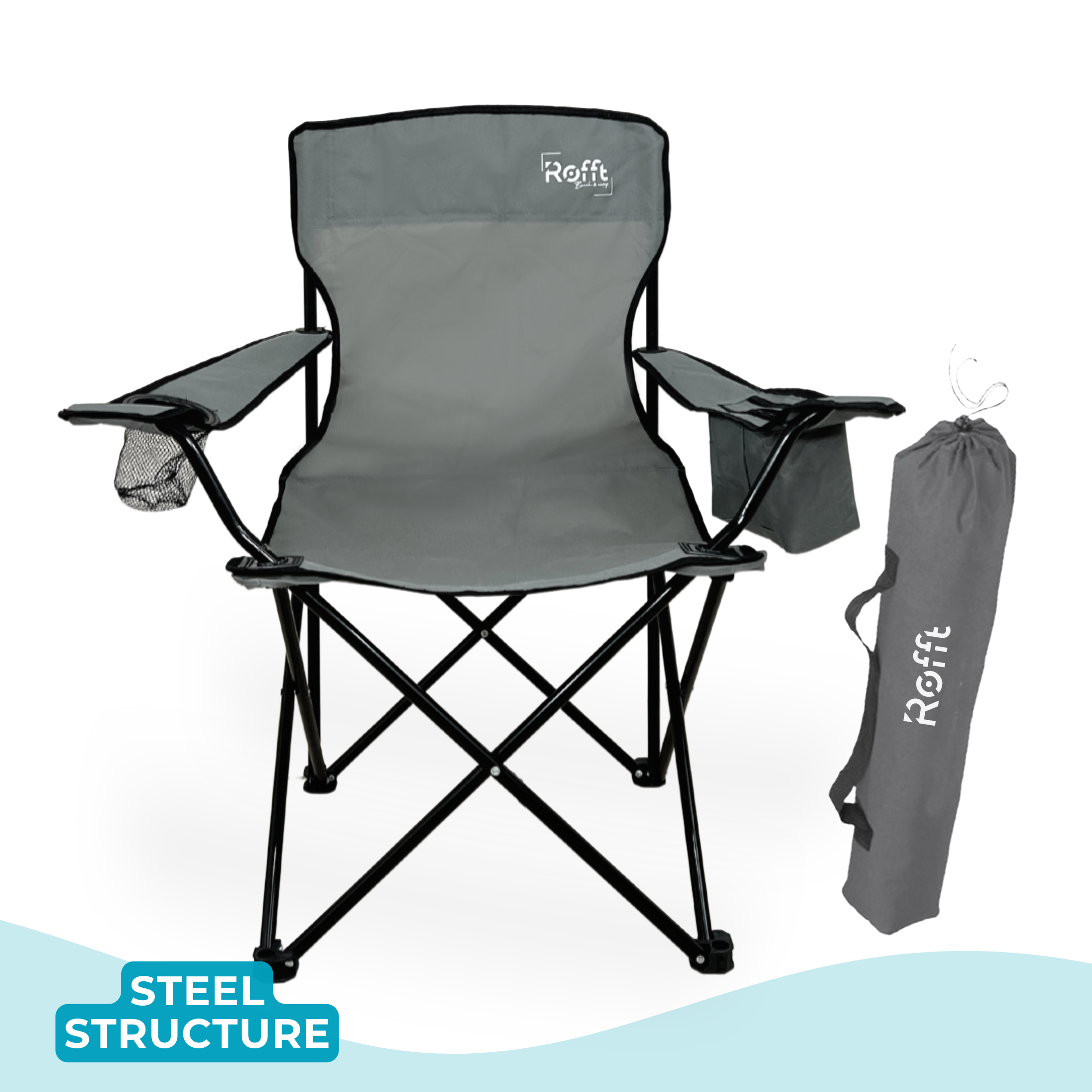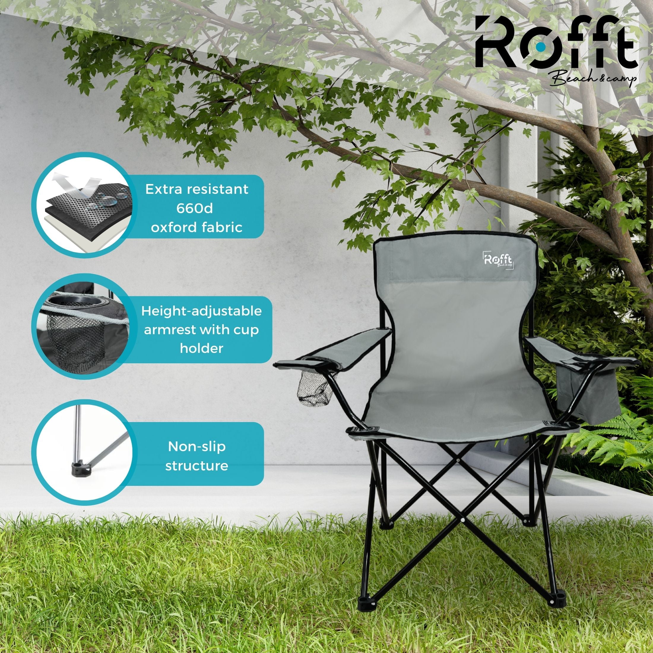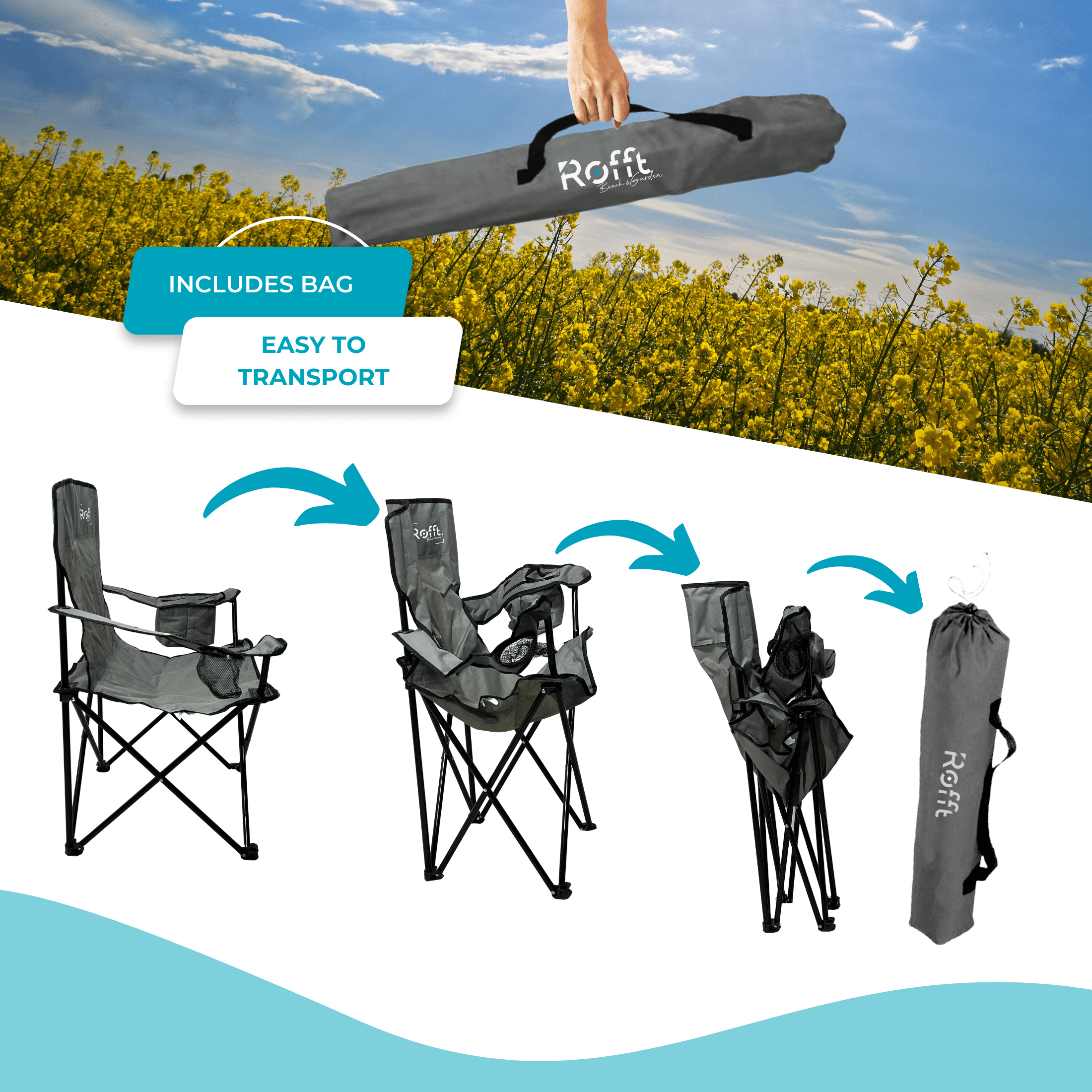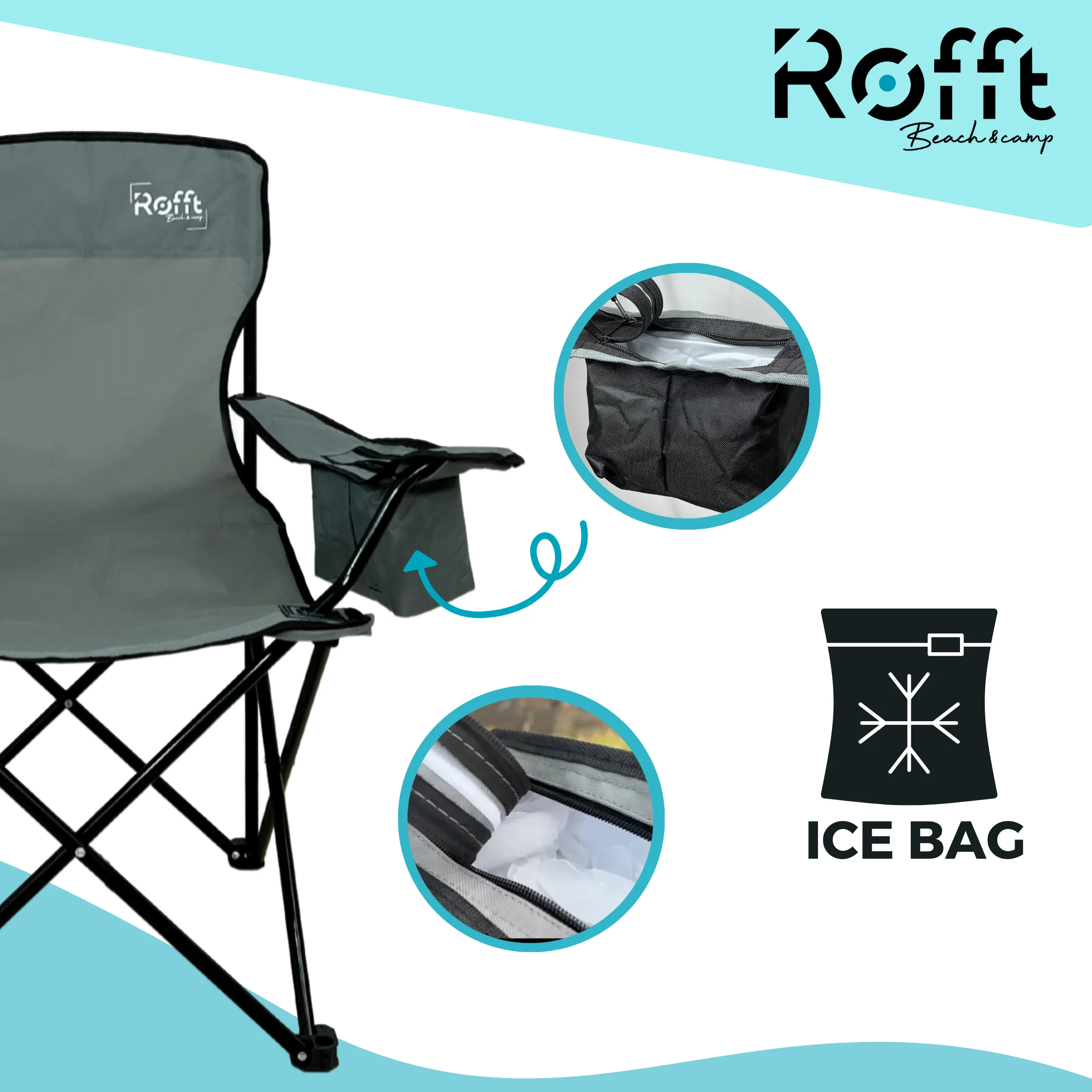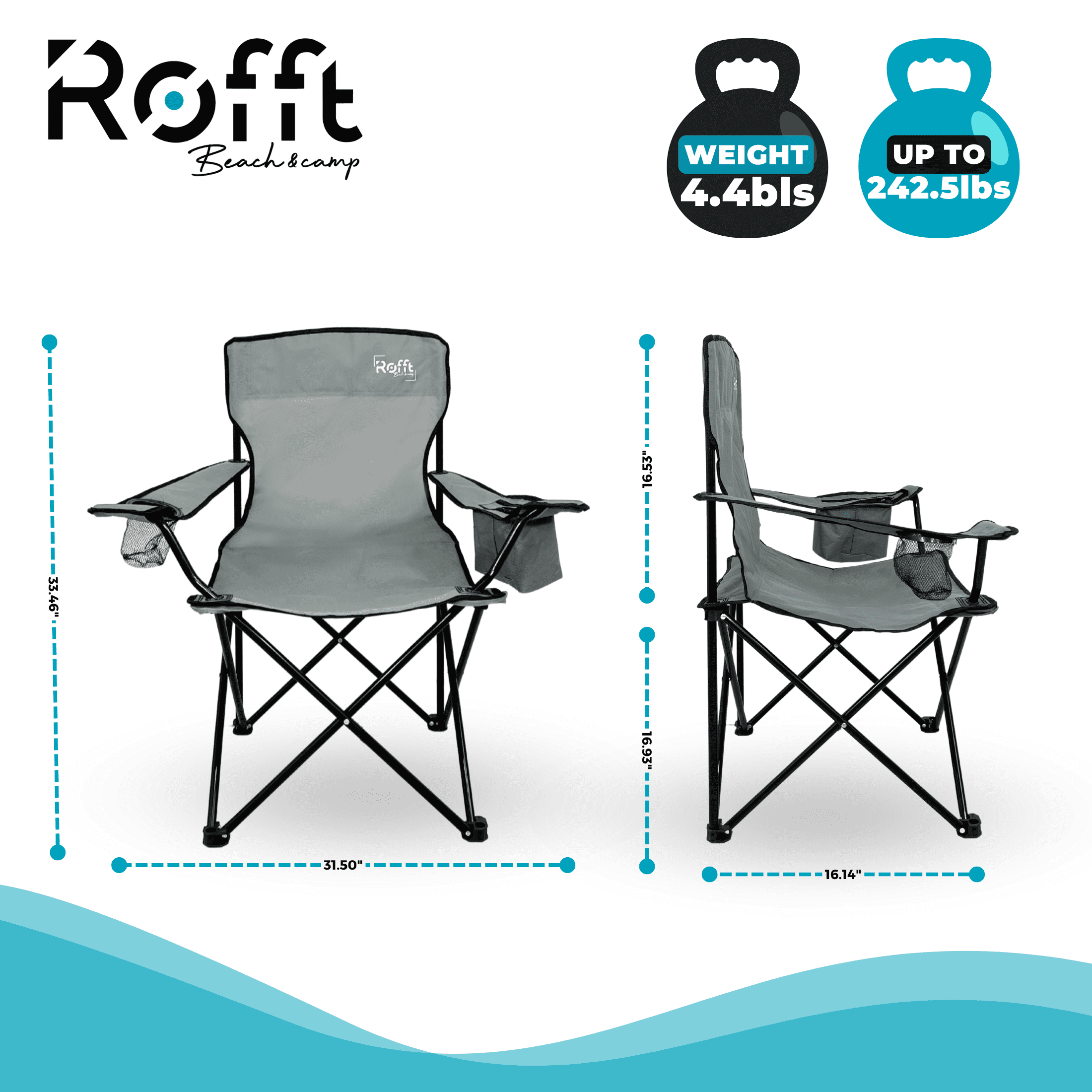 ROFFT Portable Camping Chair with Can Cooler, Fully Seat and Back with Side cooler Pocket and Cup Holder, Carry Bag Included, Collapsible Chair for Camping, events, Beach, and Sports