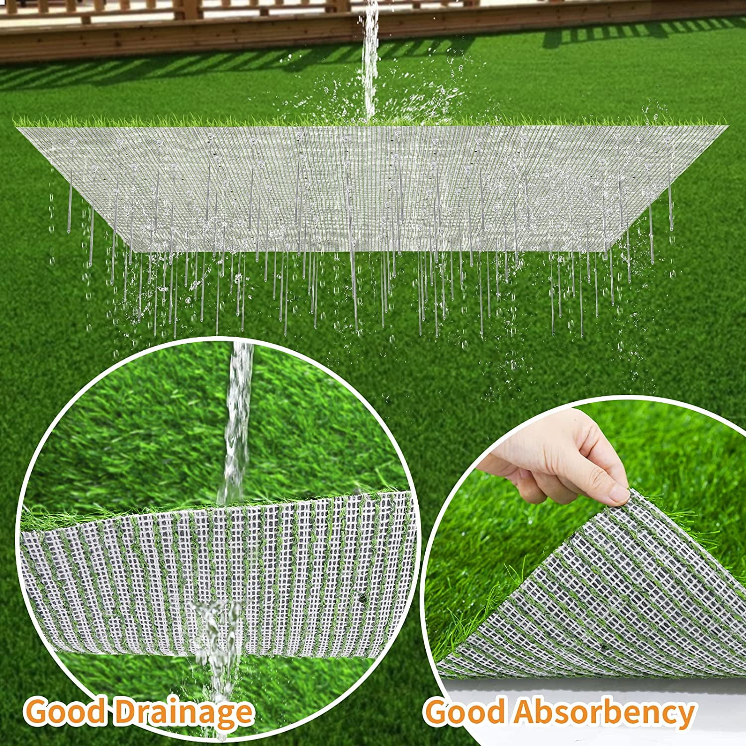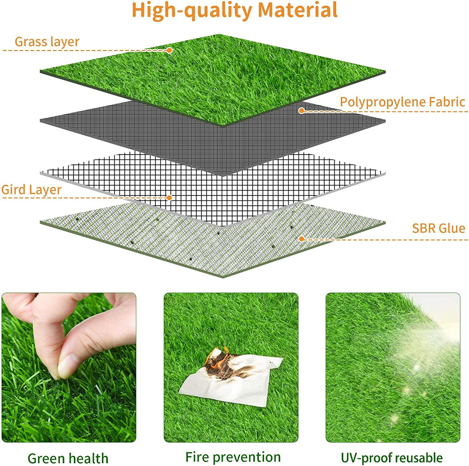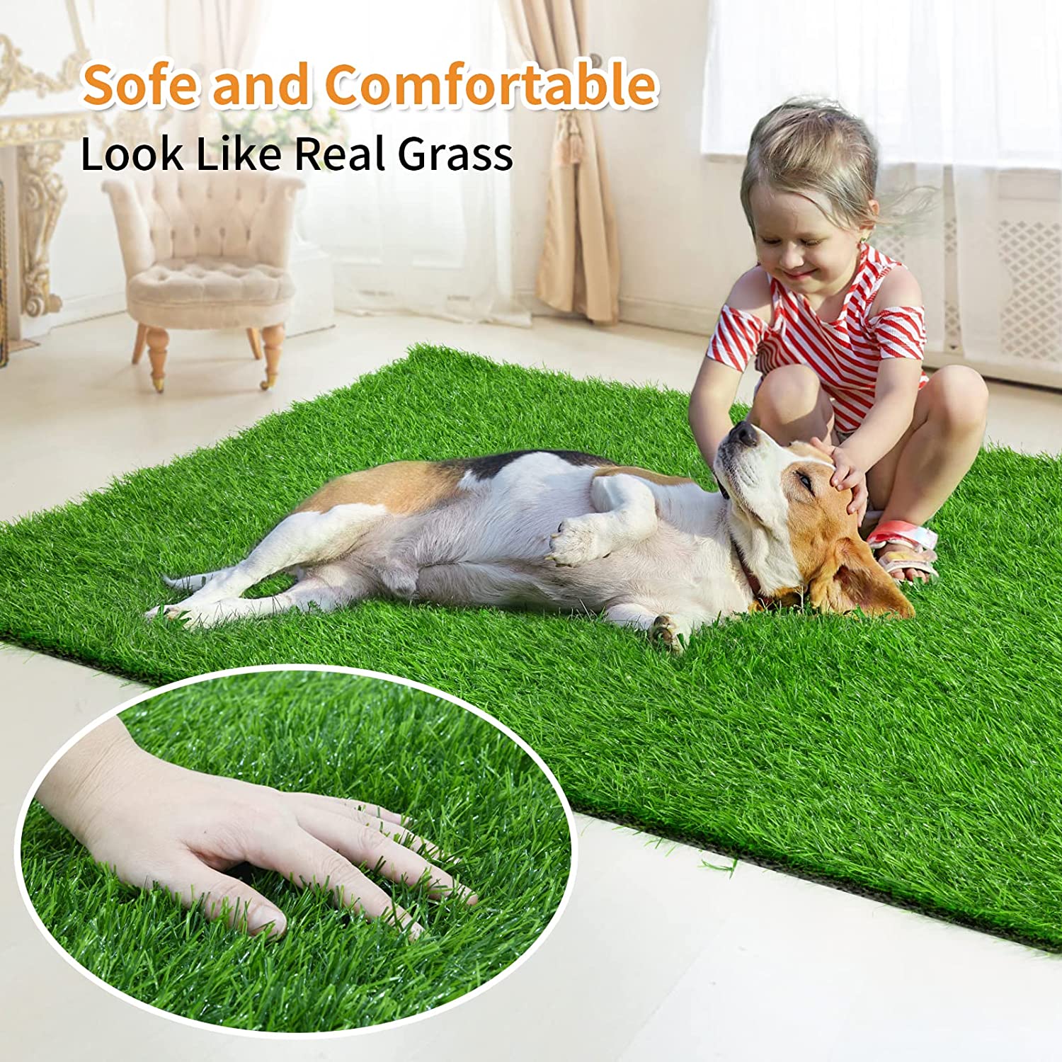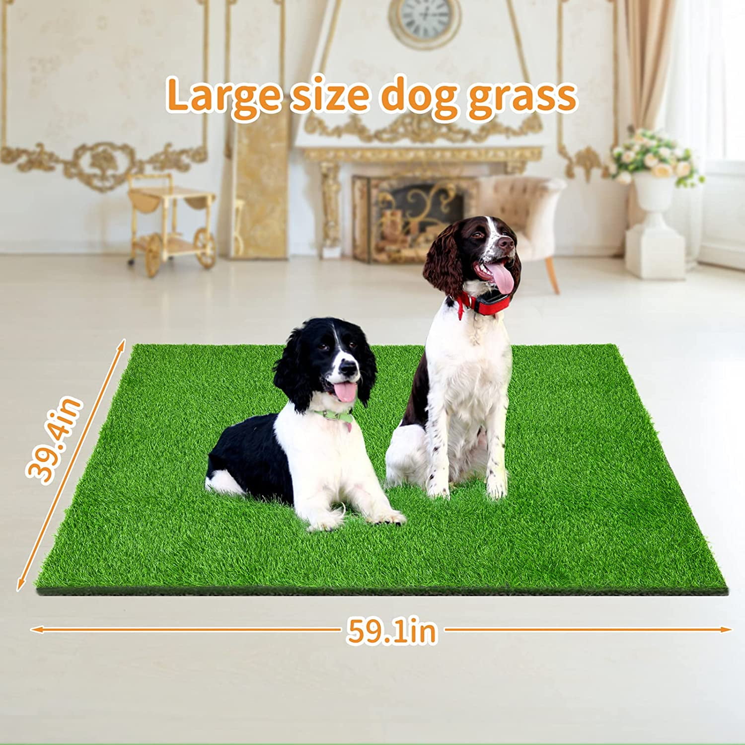 Artificial Grass Potty Training Pad: The grass pee mat for dogs measures 39 x 59 inches. It offers a cost-effective solution for potty training your pup, particularly for dog owners residing in buildings or older puppies with limited mobility. A pee pad grass makes dog potty training a breeze, saving you time and frustration. Get your artificial grass for dogs today! Drainage Holes Design: Artificial grass pee pad for dogs with drainage holes, it’s highly permeable and can quickly drain the liquid to avoid soiling the pet’s paw, so that it can prevent odors and keep the area clean. The super soft and lush pet grass is ideal for your furry friend to play on all day. Multifunctional Washable Potty Grass Mat: Our replacement artificial turf for dogs is lightweight, portable, and soft, making it suitable for use in various places such as garages, hallways, balconies, porches, patios, or gardens. The important thing is that you don’t have to take your pets to the outdoor toilet in bad weather. Meanwhile, It’s an excellent way to protect real grass and keep your outdoor spaces looking neat and tidy. Easy to Clean: The dog fake grass pad is very easy to clean and washable multiple times, just use a hose to clean it up. The lightweight and portable design requires no watering, mowing, or fertilizing, making it an extremely low-maintenance option. It can save money and reduce waste with a washable and reusable grass training pad. Safe for pets and children.