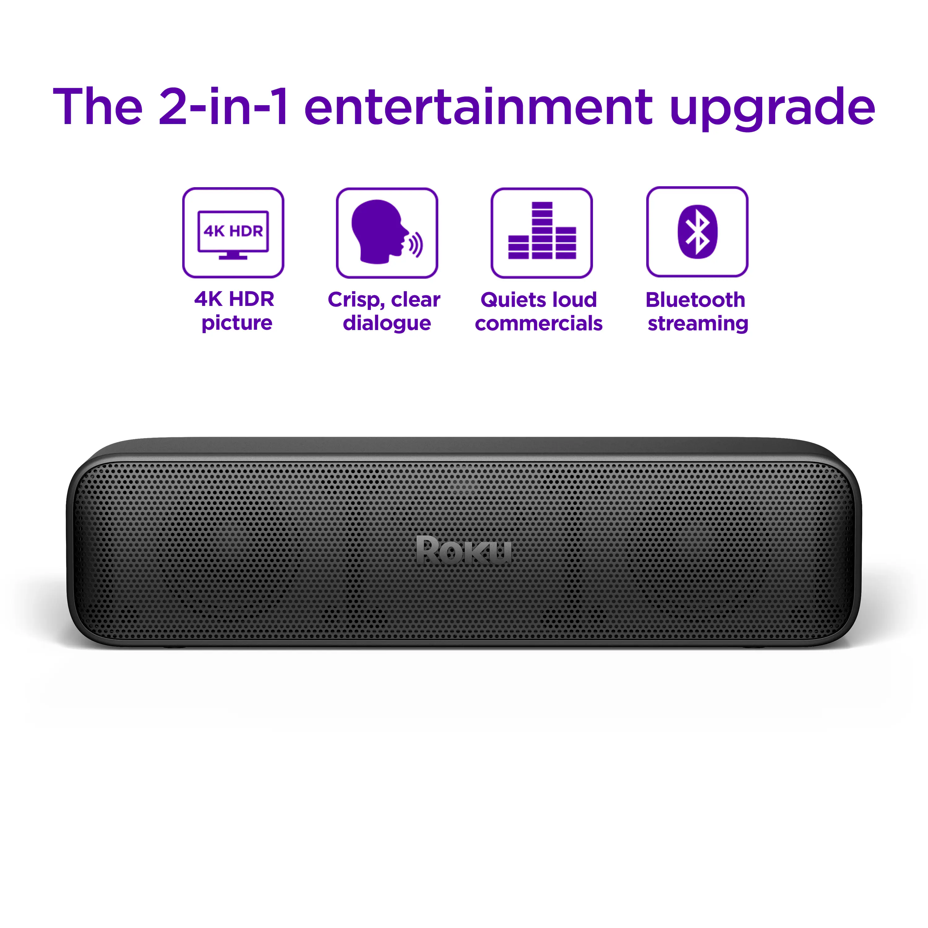 The 2-in-1 Roku Streambar SE is the easiest way to add big-screen entertainment to any TV—even small or old ones. 4K streaming is a snap with guided setup and lightning-fast apps and you’ll never miss a great line of dialogue with Enhanced Speech Clarity. Plus, pair your favorite wireless headphones or stream music from your mobile device with Bluetooth. With a massive selection of free, live, and premium TV at your fingertips, it’s easier than ever to watch what you love in any space you call home