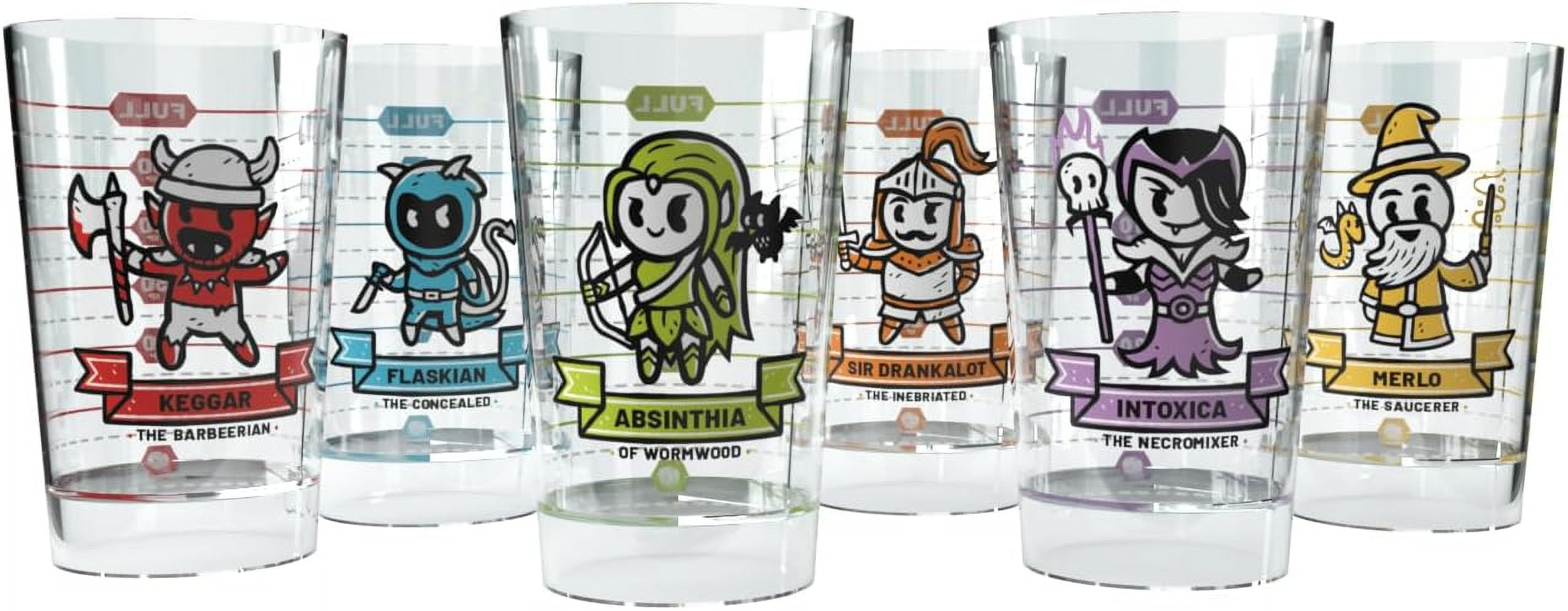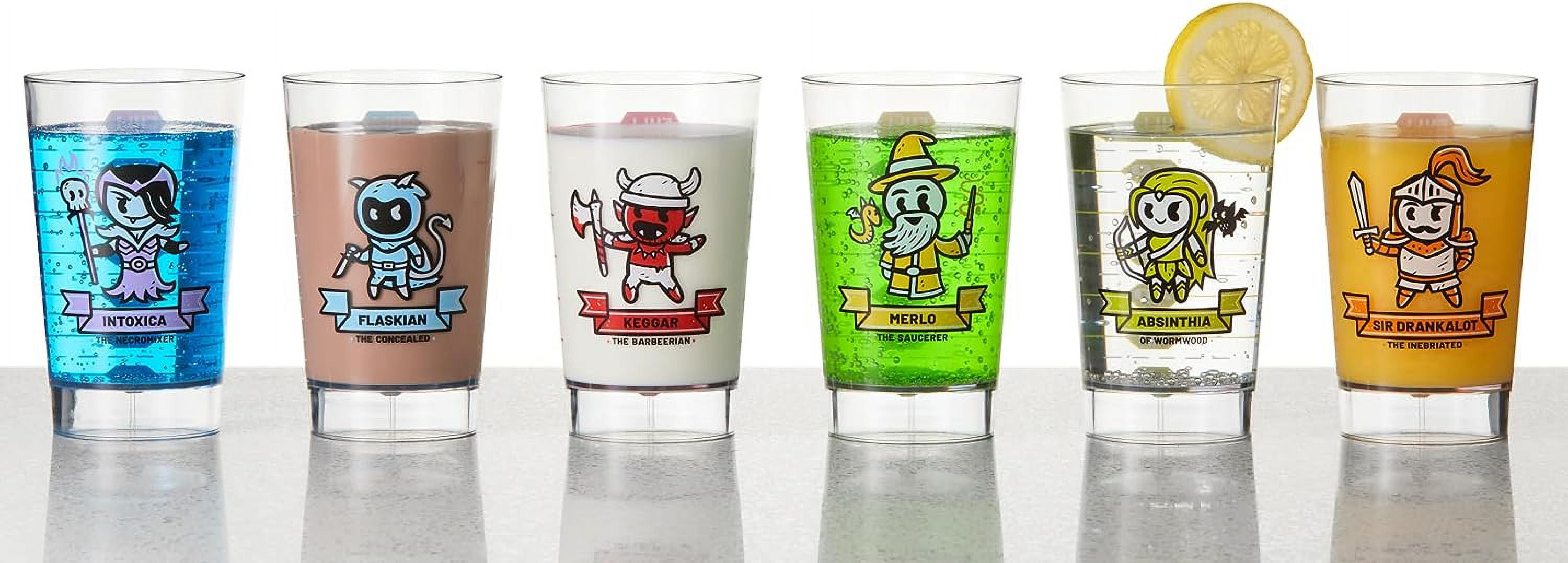 HEROES OF BARCADIA 1st Edition: Build your dungeon, fight monsters, collect Power-Ups to advance your abilities and use Loot Cards to stop your opponents from reaching the Grand Drink Guardian first! HEROES OF BARCADIA 1st Edition: Liquid Life Battle Damage System determines HP, letting YOU decide what liquid to use! Soda, beer, juice, water, alcohol or any another beverage – the choice is yours! NUMBER OF PLAYERS AND AVERAGE PLAYTIME: This pun-tastic adult drinking games is a tile based strategy game for 2 – 6 players (up to 8 with the Party Pack Add-On!) Average playtime is 30 – 90 minutes. Everything (except drinks) Included! HEROES OF BARCADIA comes complete with SIX 20-sided glitter dice, 100% Waterproof Cards, Rulebook, AND SIX Unique Dishwasher Safe Character Cups! Host your friends on Game Night with more than just an old deck of dead joke cards. HEROES OF BARCADIA is a Complete Party Setup in a Box! Strategy, Drinks, Death and Glory – ALL YOURS FOR THE TAKING!