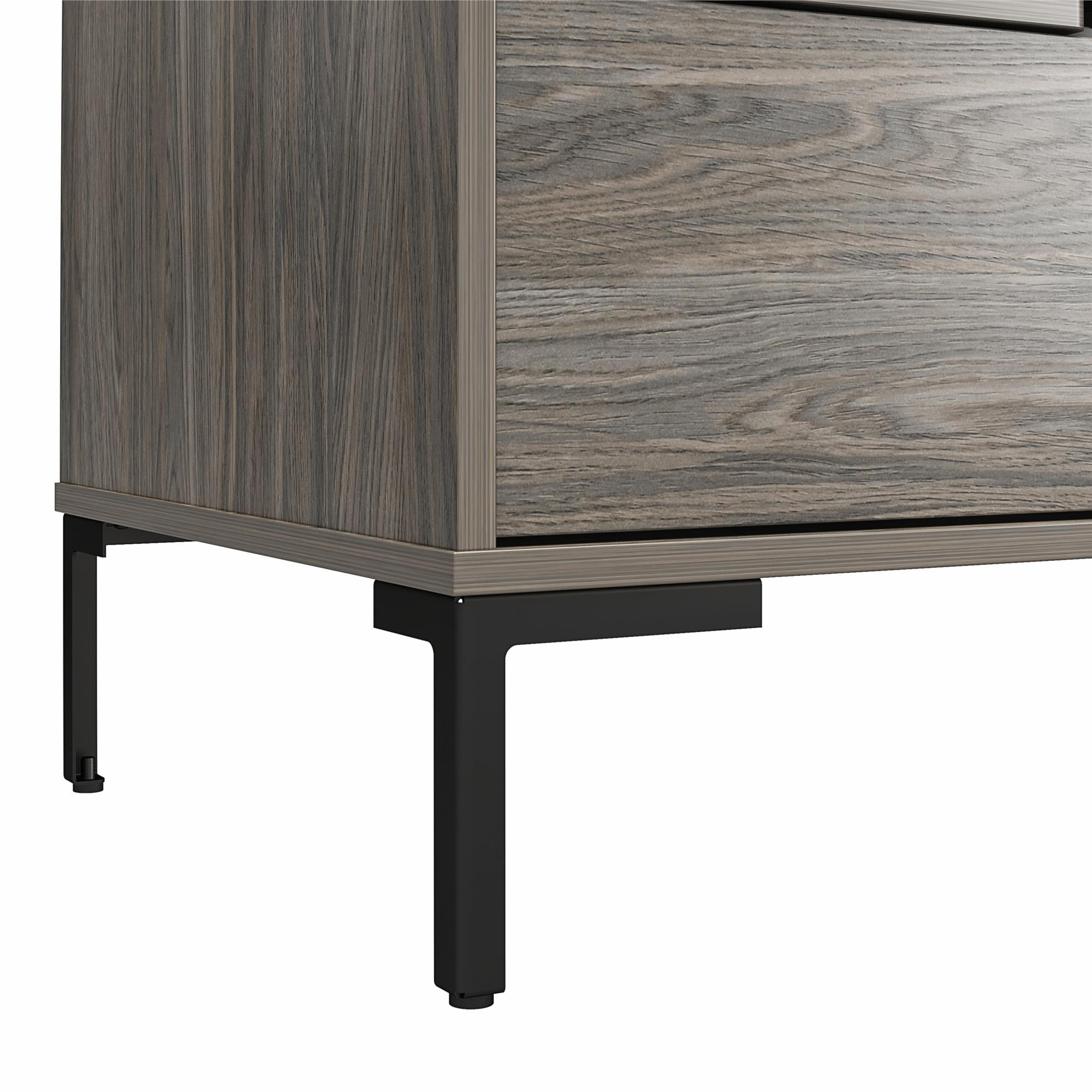It’s time to stop losing sleep over poor decor and give your bedroom a little face lift with the rustic, yet refined, Rolland collection by Ameriwood Home. This simplified take on utilitarian forms is edgy enough to take on industrial spaces with a nod toward sophisticated elegance. The Tall Dresser features three spacious drawers and is constructed from durable MDF and engineered wood atop black powder coated metal legs. An open storage space above the drawers presents the perfect place for books and allows ample space to express your own unique flair, while the cut-out handles give the dresser a sleek, modern persona. This dresser ships flat to your door. Two adults are recommended for assembly. Assembled dimensions: 31.1″W x 19.6″D x 43.1″H. Top holds up to 50 lbs. and open shelf can hold up to 40 lbs. Drawers can hold up to 35 lbs.