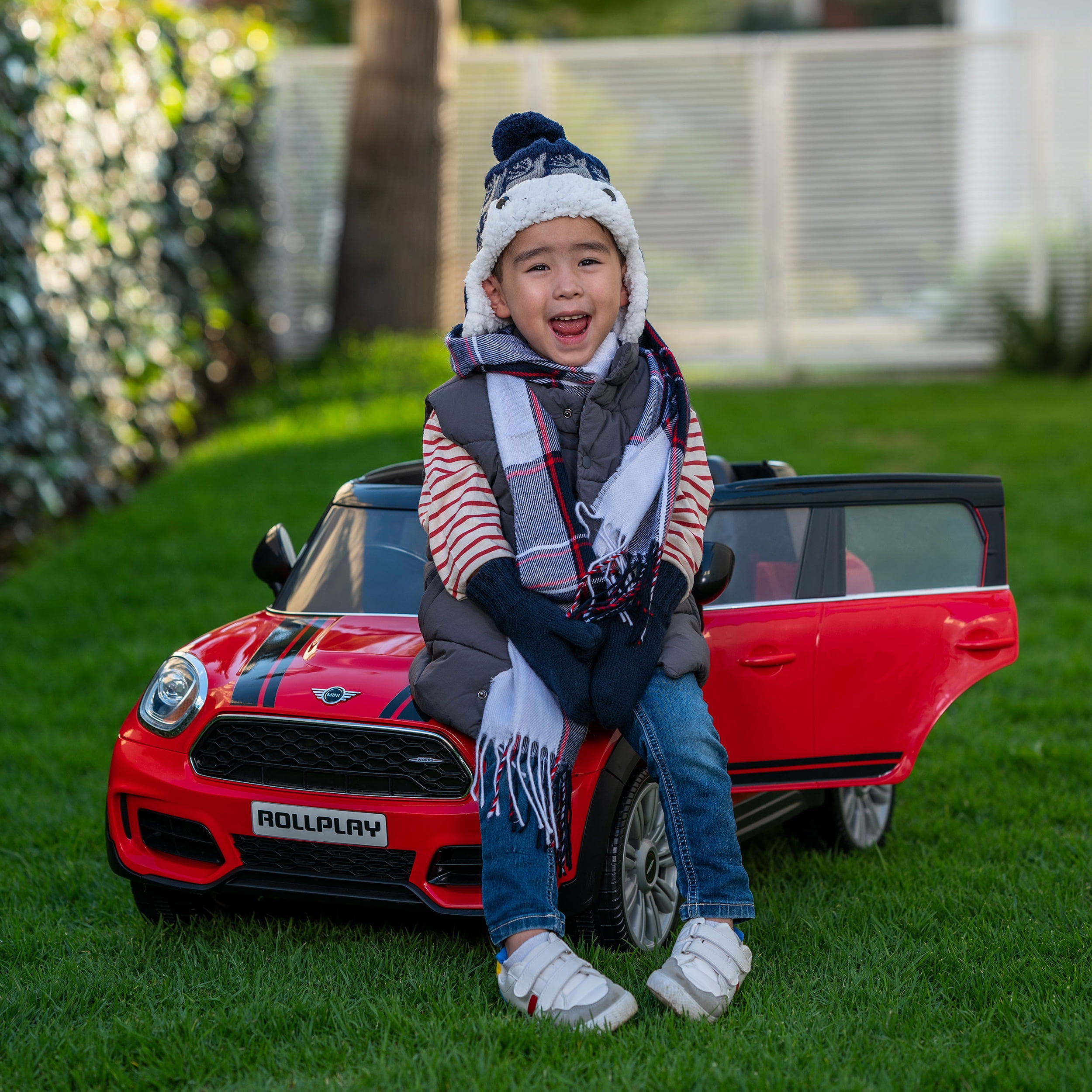 Imagine your little driver behind the wheel of an international icon: the MINI Countryman 6V Battery Ride-On from Rollplay®. This ride-on vehicle is endowed with all the charm and bold style of the real deal, with the authentic MINI emblems you expect, plus LED headlights, chrome detailing, clear windshield and side windows! Your child can open the driver-side door, tuck into the seat right under Countryman’s unmistakable hard-top and set off for adventure. The working foot pedal and shifter get things revved up to 2.5 mph in forward and reverse speeds. Button-activated horn and engine sounds, plus tires with rubber traction strips, make for a joy ride every time. This MINI Countryman ride-on is designed for use by children 3 years of age and older, weighing up to 77 lb. The 6V battery and charger are included. Backed by a limited 1-year warranty on the vehicle, a limited 6-month warranty on the battery, and the support of a dedicated U.S. Customer Service team.