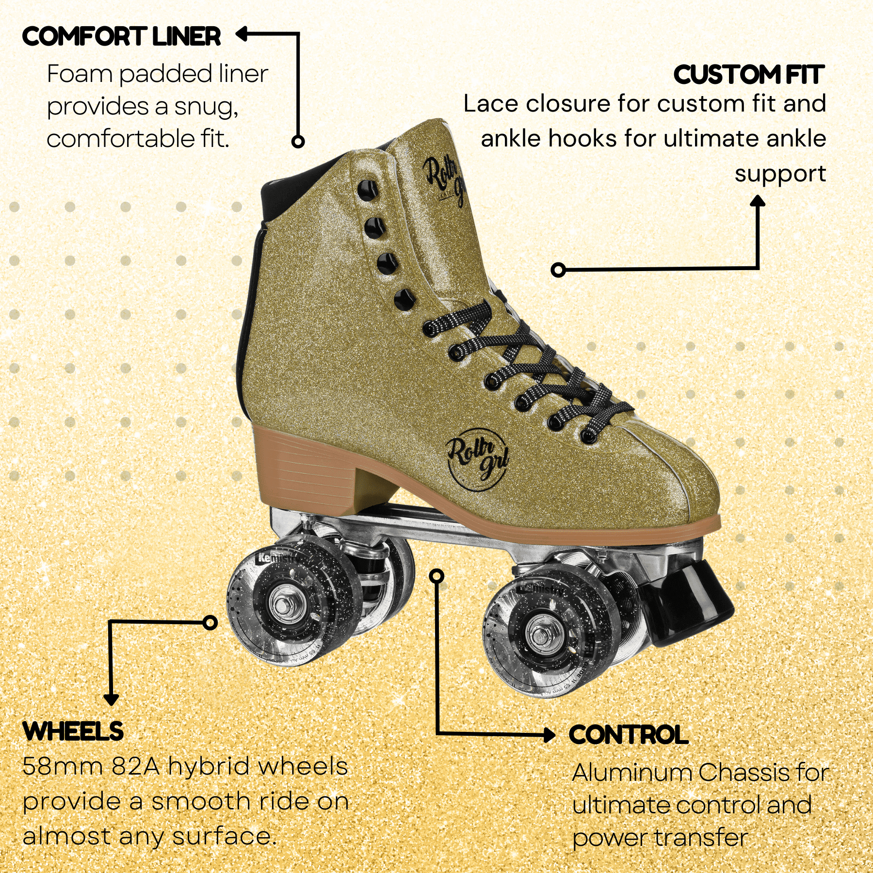 Rollr Grl Astra Glitter Roller Skates Gold/Black size 04