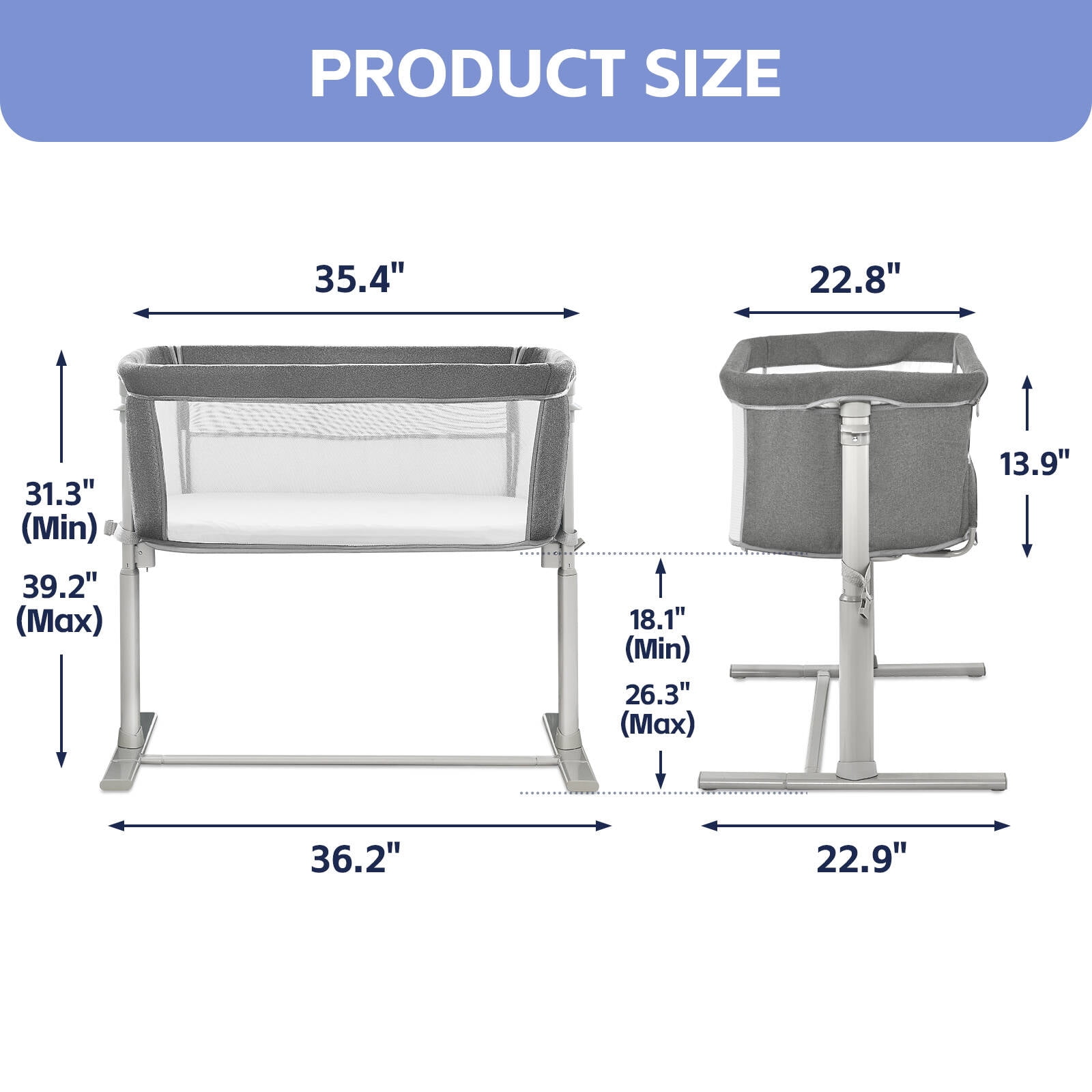 RONBEI Baby Bassinet, Baby Bassinet Bedside Sleeper, Bedside Crib for Baby Infants Unisex Why Choose RONBEI Bassinet? Fall asleep knowing your little one is close to our bassinet bedside sleeper. This RONBEI bassinet is a bset choice. RONBEI is a 14-year professional manufacturing enterprise specializing in baby crib design, research, and development. RONBEI bassinet was manufactured with soft skin-friendly fabric which exceed safety standards while promoting bedside parent-infant bonding, holds your little one safely within reach, right at your bedside. RONBEI bedside bassinet can be adjustable to 9 height adjustments level enabling you to lower or raise the height according to your bed height. RONBEI bedside bassinet for baby is easy to assemble, comfy, and very safe! You are able to take down and reassemble easily without having any other tool. Features: 9 Height Adjustment Lightweight and Portable Bassinet Double-sided Breathable Mesh Specification: Color: Deep/Light Gray Brand: RONBEI Gender: Unisex Product Dimension: 36.2″L x 27″W x 39″H Fabric material: Peach skin, cationic, polyester Main material: Steel pipe + plastic Product Weight: About 22 pounds Suitable Age: 0-10 Months Maximum Weight Recommendation: 19.8 Pounds
