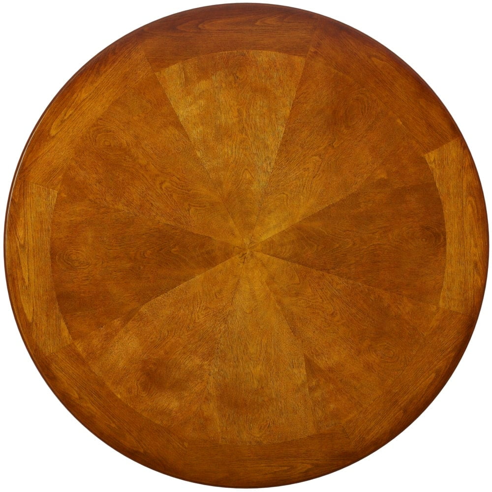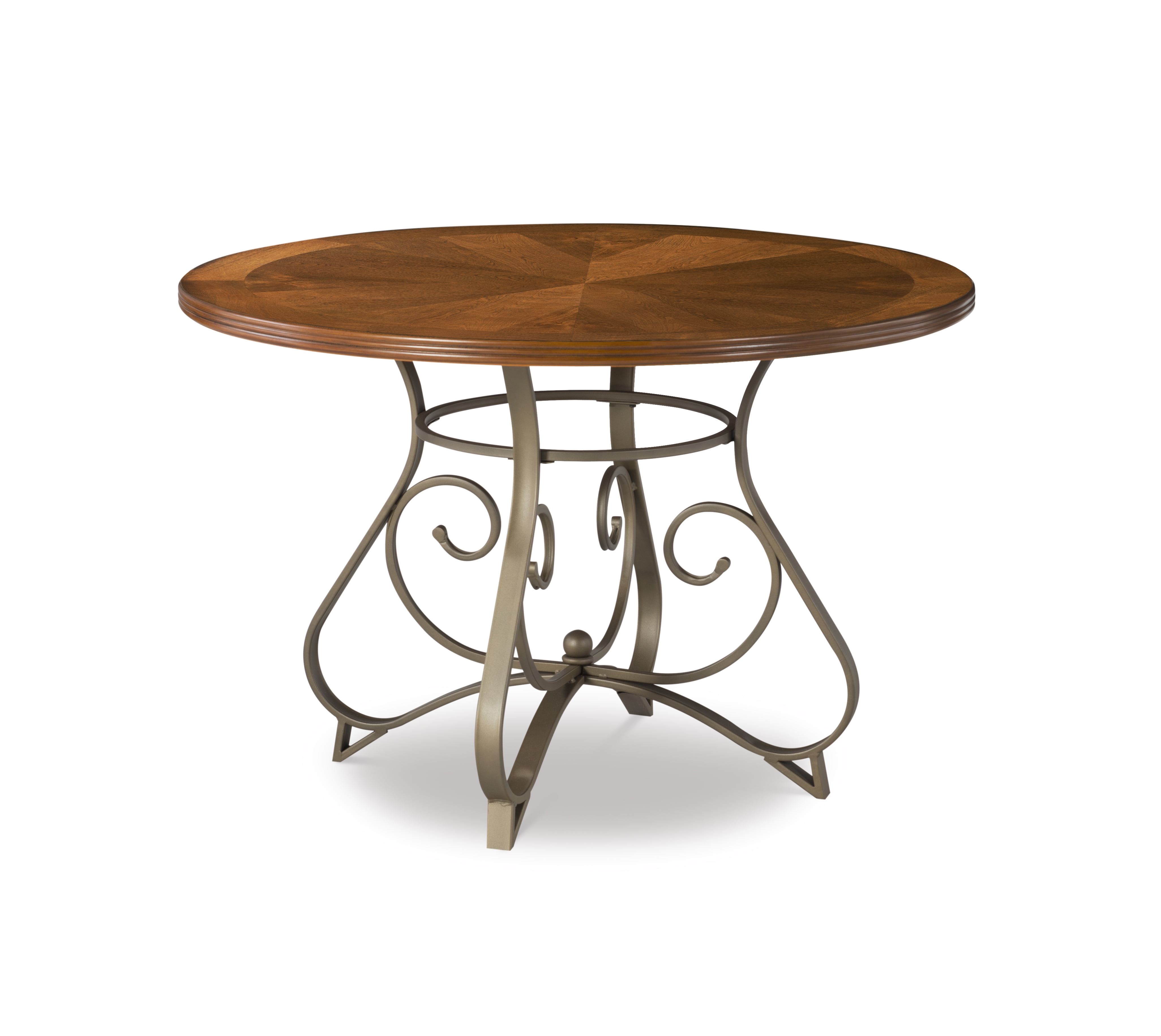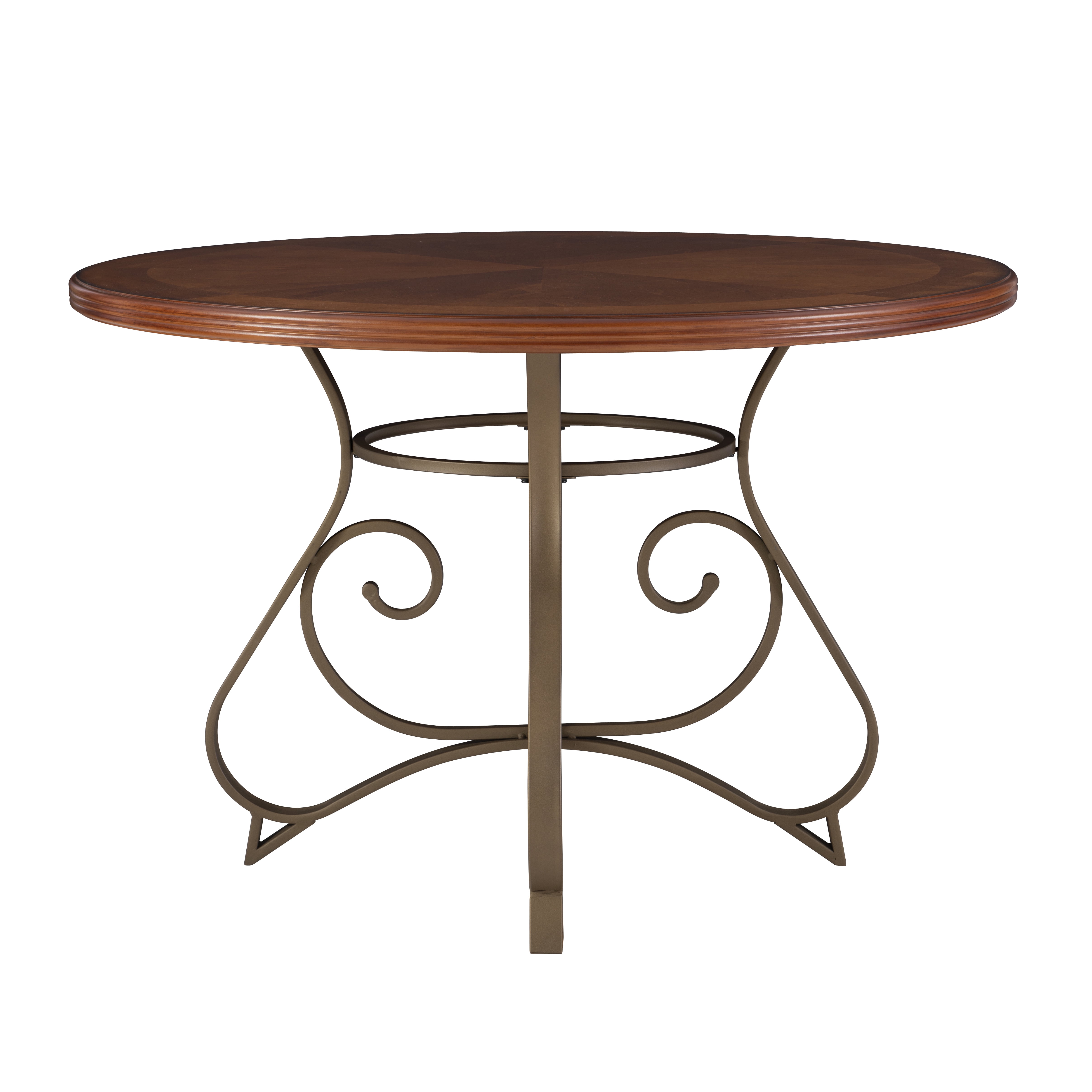 Roselyn 45″ Round Dining Table, Brushed Faux Medium Cherry Wood with “Matte Pewter and Bronze” Metal